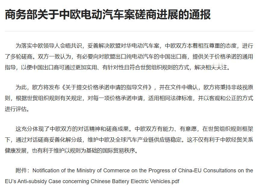 重大利好!中欧电动汽车案终于迎来“软着陆”![耶] 商务部通报,欧方将发布《关于