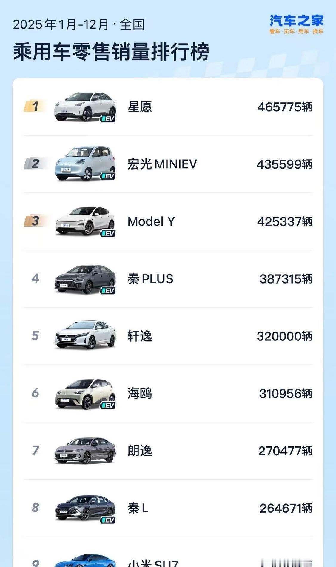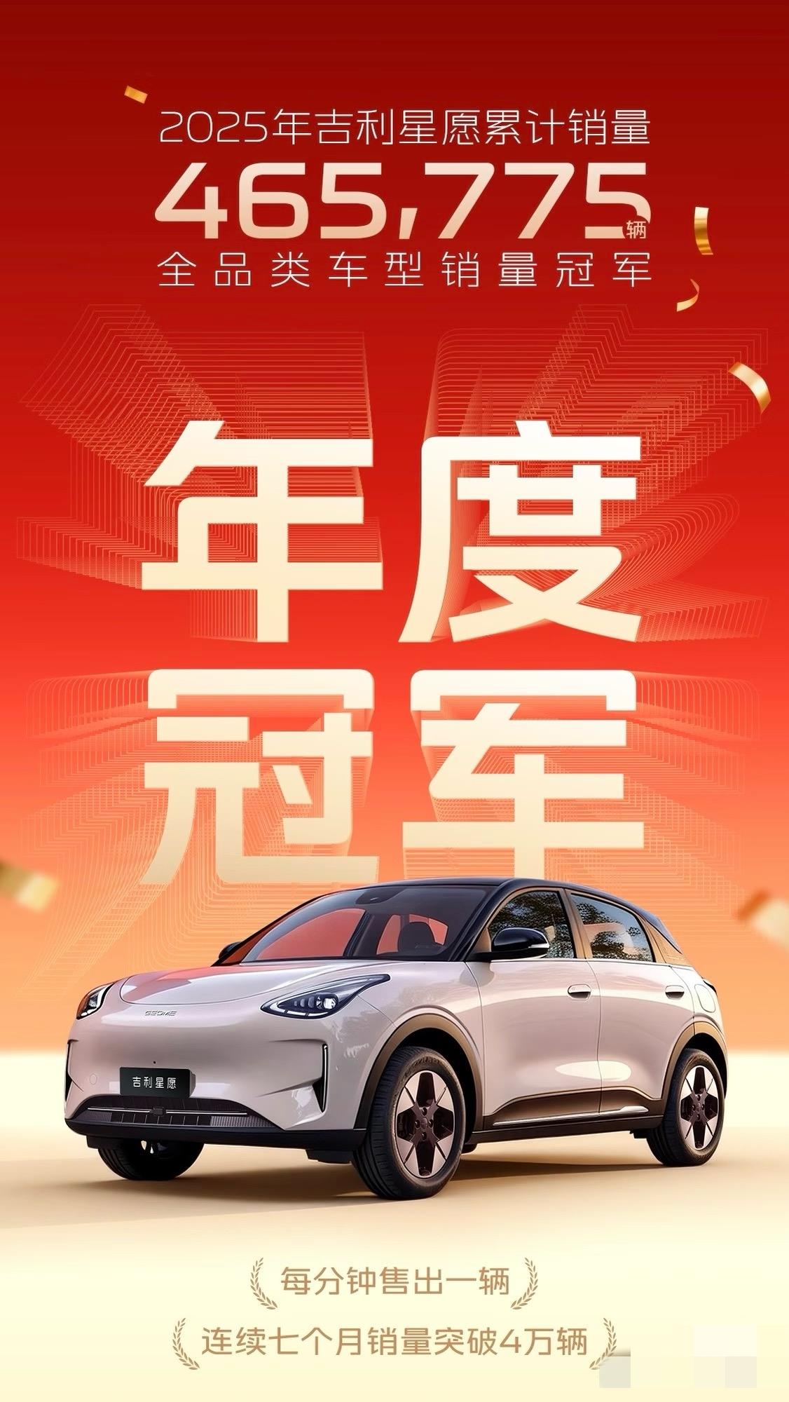 星愿销量第一!2025年全年465775台,这成绩太惊艳了!平均月销3.88万辆
