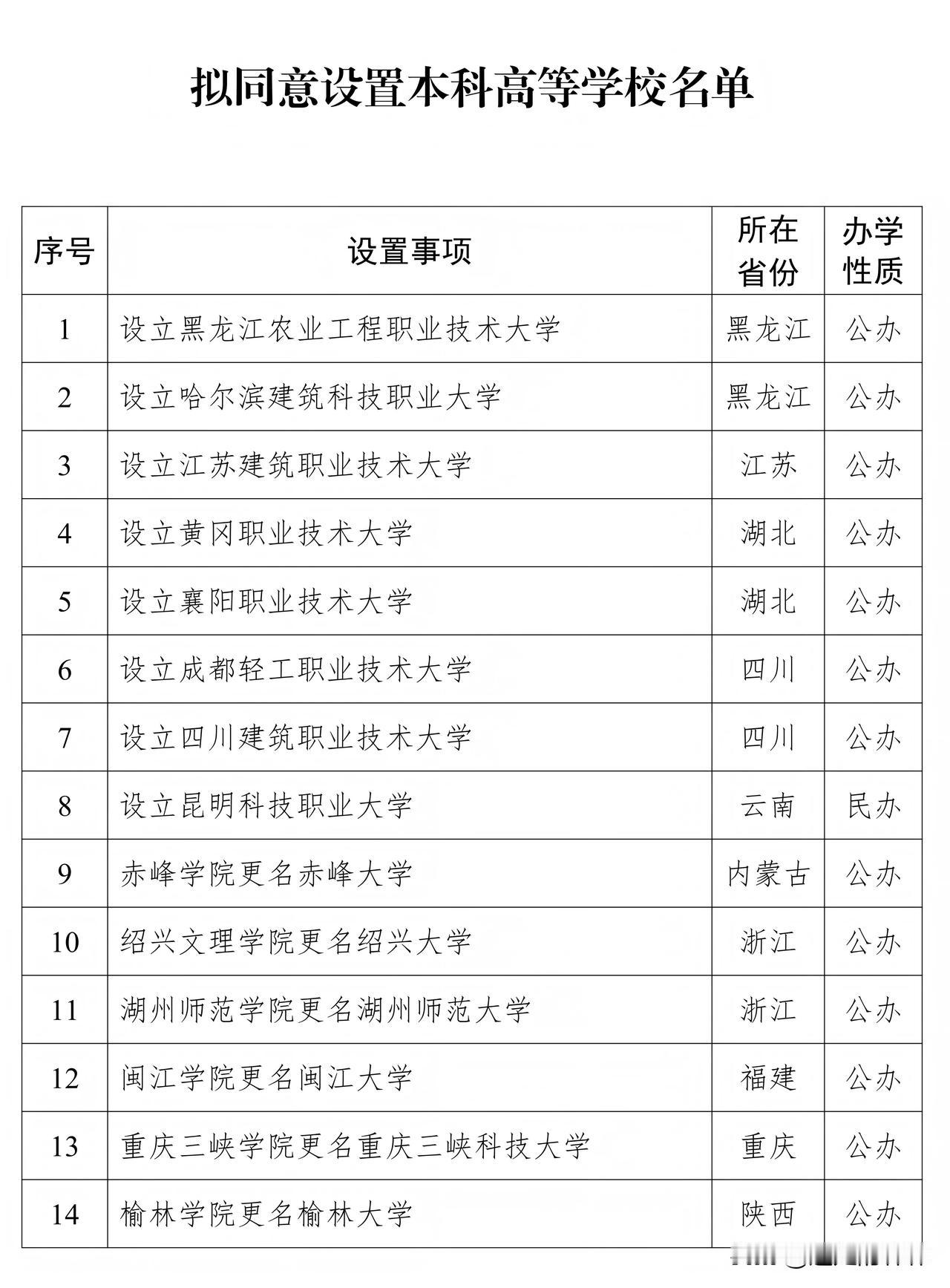 教育部官宣!襄阳拟设职业技术大学,填补本科职教空白 襄阳又迎来教育大喜事,教育部最新公示拟新设14所本科高等学校,咱们大襄阳的襄阳职业技术大学赫然在列,这可是襄阳首所本科层次的职业技术大学,直接填补了本地本科职业教育的空白,谁看了不喊一句“牛哇”! 要知道这次新设的本科院校里,湖北就占了两所,襄阳能拿下这一名额,足见咱襄阳的职业教育实力和区域产业发展的底气。这所新大学是公办本科性质,未来会聚焦襄阳的汽车、装备制造、现代服务业等支柱产业,培养更多懂技术、能实操的本科层次应用型人才,再也不用羡慕别的城市有特色职业本科啦! 想想以后襄阳的学子在家门口就能读职业本科,毕业后还能直接对接本地产业就业,既方便又能为家乡发展出力,这波属实是双赢!期待襄阳职业技术大学早日正式挂牌,为襄阳的高等教育和产业升级添上浓墨重彩的一笔!