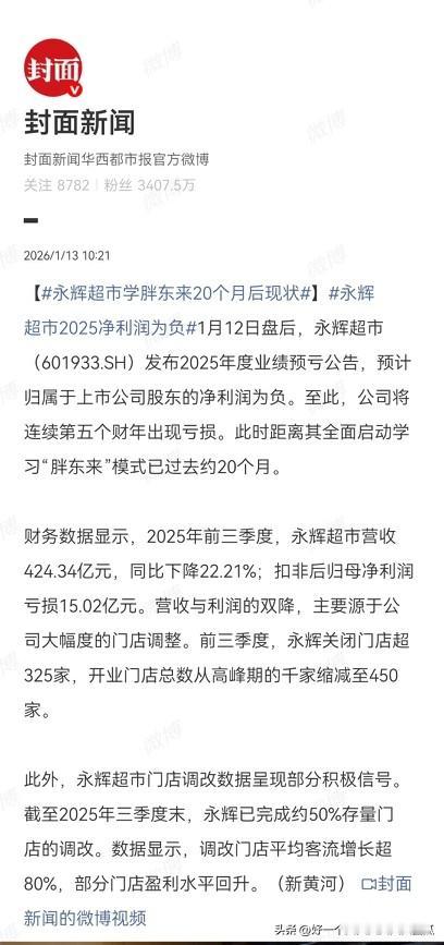 永辉超市感觉是有点积重难返了, 跟着胖东来学习做了调改本以为能翻身, 结果2025年的业绩依然亏损了15个亿。 最关键是通过学习胖东来做调改后, 很多的商品价格不降反升, 但是大家一对比山姆、盒马虽然有个会员费, 价格差不多但是品质差距就明显了, 所以最终永辉还是遇到瓶颈了。