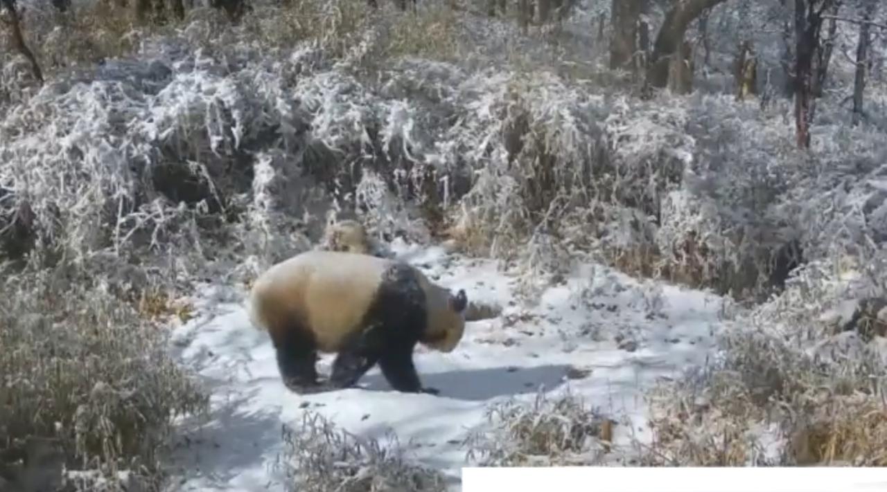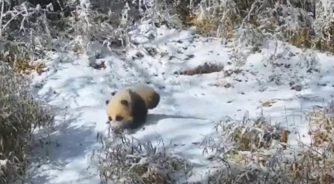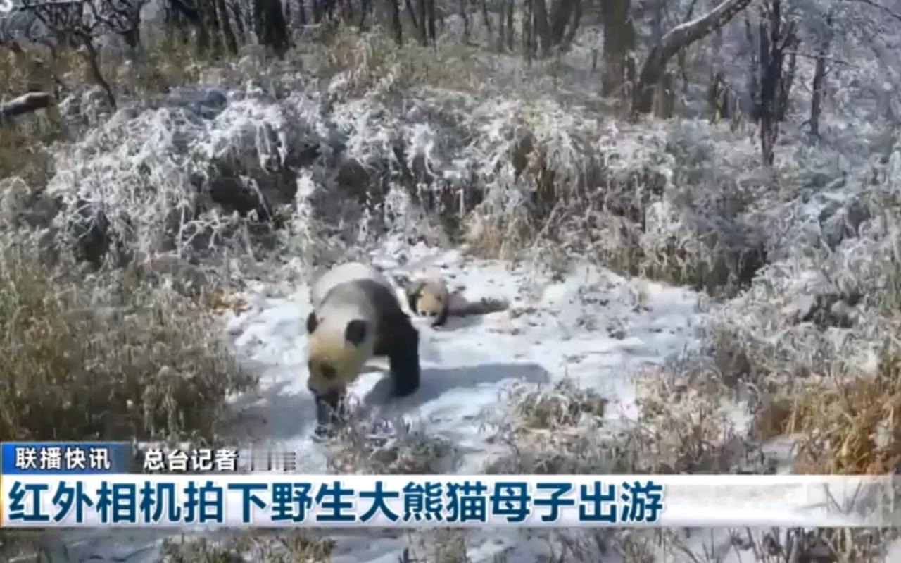 红外相机在雪林里捕捉到野生大熊猫母子同框画面,母熊猫缓步在前探路,幼崽跌跌撞撞跟在身后,雪地中打滚嬉闹的模样憨态可掬。这些影像由大熊猫国家公园的智能监测系统拍摄,无接触的记录方式既不干扰它们的自然生活,也为科研团队研究野生熊猫的育幼行为、活动范围提供了珍贵的第一手数据。