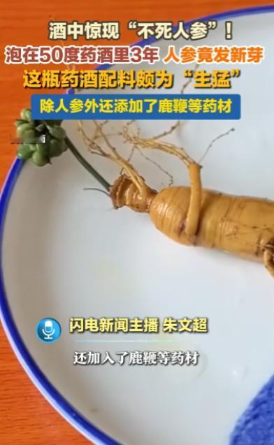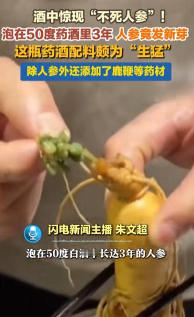 “天方夜谭!”上海,一男子在家喝酒时,意外发现泡了3年的药酒里的人参居然长出了绿叶!男子和家人都感到不可思议!事后,有人出高价收购,男子婉言拒绝!网友:活久见! 那天晚上,张先生忙完一天的工作,像往常一样端坐在餐桌旁,想喝两口小酒解解乏。他想起储藏室里还放着一瓶泡了三年的药酒。 那是他三年前特意托东北的朋友买了上等食材泡制的,一直没舍得多喝,只在逢年过节或者感觉身体疲惫时才会倒上一小杯。 张先生起身走到储藏室,搬开角落里的纸箱,那瓶十斤装的玻璃罐药酒就放在最里面,罐身蒙了一层薄薄的灰尘,能隐约看到里面深褐色的酒液和沉在底部的药材轮廓。 他拿抹布擦了擦罐身,抱着瓶子走到餐桌旁,拧开密封的盖子后随之而来的是一股混合着药材香气和酒精醇厚感的味道,其中还夹杂着一丝鹿鞭特有的腥香,这是当初泡制时特意加进去的 “猛料”。 张先生拿起酒杯,慢慢往里面倒酒,深琥珀色的酒液顺着瓶口缓缓流出,挂在杯壁上形成细密的酒线。就在他准备放下酒瓶时,眼角余光突然瞥见罐底有一抹不一样的颜色。 那根泡了三年、表皮已经有些发皱的人参顶端,居然冒出了几片嫩绿的叶子!他以为是自己眼花了,赶紧把酒瓶凑到灯光下,眯着眼睛仔细一看,没错!就是绿叶。 “老婆,快过来看看!这玩意儿太邪门了!” 张先生忍不住大喊一声,声音里满是震惊,正在厨房收拾的妻子听到喊声,擦了擦手快步走过来,顺着他指的方向一看,也瞬间瞪大了眼睛。 伸手揉了揉眼睛,不敢相信地说:“这怎么可能?泡在酒里三年了,酒精都快把它泡透了,怎么还能长叶子?是不是我们买的人参有问题啊?” 夫妻俩围着酒瓶看了半天,越看越觉得不可思议,张先生又把正在写作业的儿子叫过来,孩子凑到跟前,好奇地指着绿叶说:“爸爸,这人参是不是成精了呀?它在酒里也能生长吗?” 这瓶药酒的配料确实够 “生猛”,当初张先生可是下了血本。 除了这根足足有巴掌大、带着完整芦头的长白山鲜人参,他还特意买了一根晒干的鹿鞭,切成薄片放了进去,据说鹿鞭是传统的滋补佳品,性温味咸,能补肾壮阳、强筋健骨。 另外,他还加了几对海马、一把枸杞和几片黄芪,海马性温味甘,能活血散结,枸杞和黄芪则能补气养血,当时想着这些药材搭配在一起,泡出来的药酒滋补效果肯定好,专门给家里老人和自己调理身体用。 泡制的时候,他选的是 50 度的纯粮白酒,按照老辈人说的方法,把所有药材一股脑放进玻璃罐,倒入白酒没过药材。 然后用保鲜膜缠了好几圈,再拧紧盖子,放在阴凉通风的储藏室里,没想到这一泡就是三年,还泡出了这么个稀罕事儿。 张先生越想越觉得神奇,就用手机对着酒瓶拍了个视频,把人参发芽的细节拍得清清楚楚,然后发到了自己的社交账号上。 配文说 “泡了三年的药酒,人参居然发芽了,活久见!” 没成想,视频刚发出去没多久,就火了起来。 短短一天时间,点赞量就破了百万,评论区里更是炸开了锅,网友们纷纷留言直呼 “不可思议”。 还有人说:“我家泡的药酒里的枸杞都烂了,这人参也太顽强了,生命力堪比小强!”还有网友羡慕地说:“这可是稀罕物,说不定很值钱,赶紧找专家看看!” 甚至有网友开玩笑说:“建议张先生把它当宠物养着,说不定还能开花结果呢!” 中医药专家表示从滋补角度来看,人参发芽会消耗自身储存的皂苷、多糖等核心营养成分,导致其滋补价值大打折扣,并且密封不严可能导致酒液中滋生微生物,存在变质风险。 虽然这瓶药酒看起来清澈无异味,但为了健康着想,不建议再饮用了。 专家提醒,很多人以为药酒泡得越久越好,其实不然,人参酒的最佳饮用期是 3-6 个月,此时有效成分充分溶出,酒质也最稳定。 超过 1 年药效就会逐渐衰减,3 年以上不仅没什么营养,还容易因密封问题变质。 生活中总有这样意想不到的惊喜,一株看似普通的人参,在酒里沉寂三年后悄然发芽,用顽强的生命力演绎了一场 “生命奇迹”。 对于这件事,您有什么想说的吗?欢迎评论区留言讨论。 信源:闪电新闻2026年-01-12——《近日,上海市民姚先生发现,自己泡在50度药酒里3年的人参,顶部竟然发出新芽。》