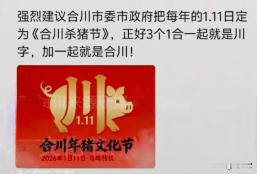 网友:“111”合川年猪文化节,这个创意太棒了! 合川文旅局,赶紧行动起来!