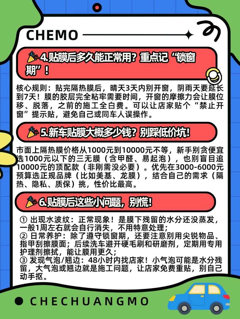 🚗新车贴膜避坑!这6个“膜”法禁忌,新手别踩❗刚提新车就急着给车窗“穿新衣”?先打住!这6个关键的“膜”法禁忌没搞懂,轻则白花钱,重则影响上牌、伤车膜,新手车主直接抄作业就行~【来自懂车帝车友圈】