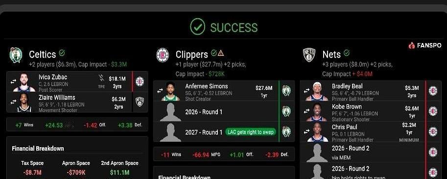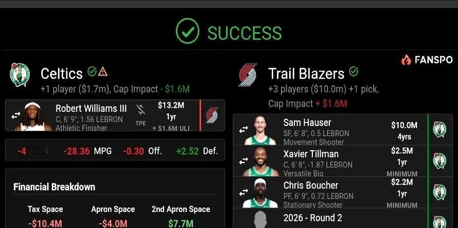 东部第二还不够?凯尔特人这是要搞大事情! 东部第二的凯尔特人最近动作不小,眼瞅着季后赛越来越近,他们把补强的目光锁定在了内线。 毕竟常规赛打得再好,到了季后赛真刀真枪拼的时候,内线要是顶不住,之前的努力可能就白费了。 他们的头号目标是快船中锋祖巴茨,这哥们本赛季表现确实亮眼,场均能拿到差不多15分11个篮板,命中率还超过60%,这样的即战力放在任何球队都是香饽饽。 但快船那边也不傻,知道祖巴茨的价值,直接开价最少两个首轮签,这个要价可不低,绿军要是真想拿下,就得好好掂量掂量了。 本来想直接拿下祖巴茨,毕竟他的数据摆在那儿,能直接提升球队内线实力,但后来发现快船的要价实在太高,两个首轮签对球队未来的选秀储备影响不小。 所以绿军也留了后手,他们的PlanB是开拓者的罗威,也就是罗伯特-威廉姆斯。 罗威是凯尔特人自己培养出来的旧将,对球队体系熟门熟路,防守能力也一直在线。 更重要的是,开拓者那边似乎也愿意放人,这笔交易的性价比看着比追祖巴茨要高不少。 一个是贵但实力猛,一个是熟悉且稳定,这选择题可不好做,现在距离交易截止日越来越近,绿军的决策时间不多了。 选祖巴茨,能得到即战力的提升,但要付出高昂的选秀权代价;选罗威,成本低还知根知底,但可能在数据贡献上不如祖巴茨那么亮眼。 不管选谁,这笔交易都直接关系到凯尔特人今年能不能冲出东部,内线深度不足的问题在常规赛可能还不明显,到了季后赛面对雄鹿、76人这些内线实力强劲的对手,短板很容易被无限放大。 绿军现在的处境有点微妙,东部第二的排名看着不错,但要想在季后赛走得更远,内线这块必须补强。 祖巴茨的篮板和得分能力确实诱人,两个首轮签的代价虽然大,但要是能换来总冠军,似乎也值得。 而罗威的防守和体系适配性也是球队需要的,性价比高意味着风险更小,交易截止日前的这几天,绿军管理层肯定忙得不可开交。 是为了眼前的冲冠机会赌一把,还是稳妥起见选择更熟悉的旧将,这不仅考验球队的魄力,也关系到他们未来几年的建队方向。 不管最终怎么选,都希望凯尔特人能解决内线问题,在季后赛打出好成绩。