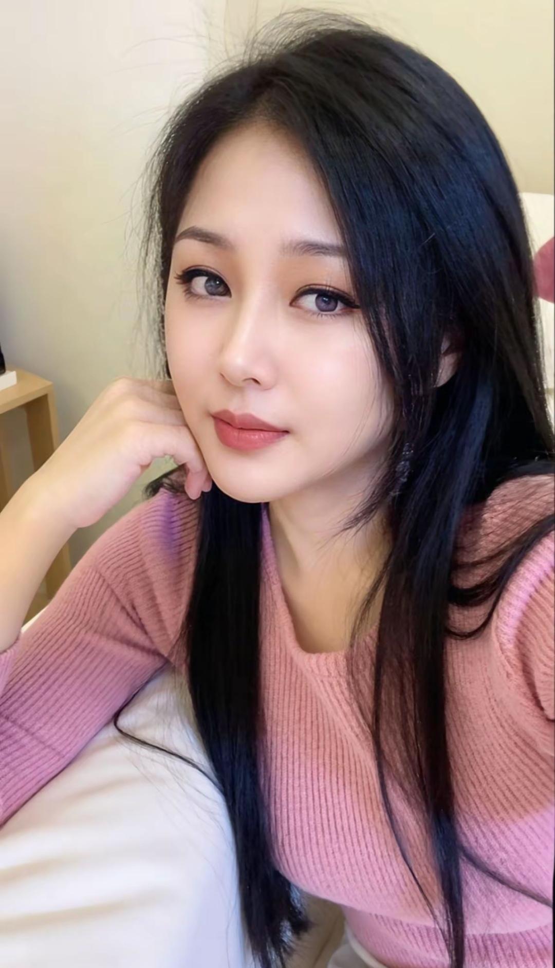 温柔甜美的居家自拍,白色毛衣搭配自然妆容,尽显优雅气质。