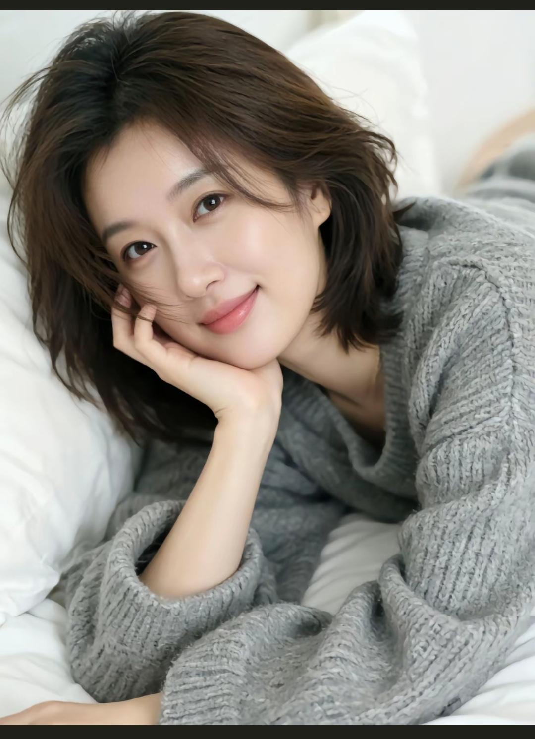 甜美笑容,黑发飘逸,优雅气质,完美侧颜