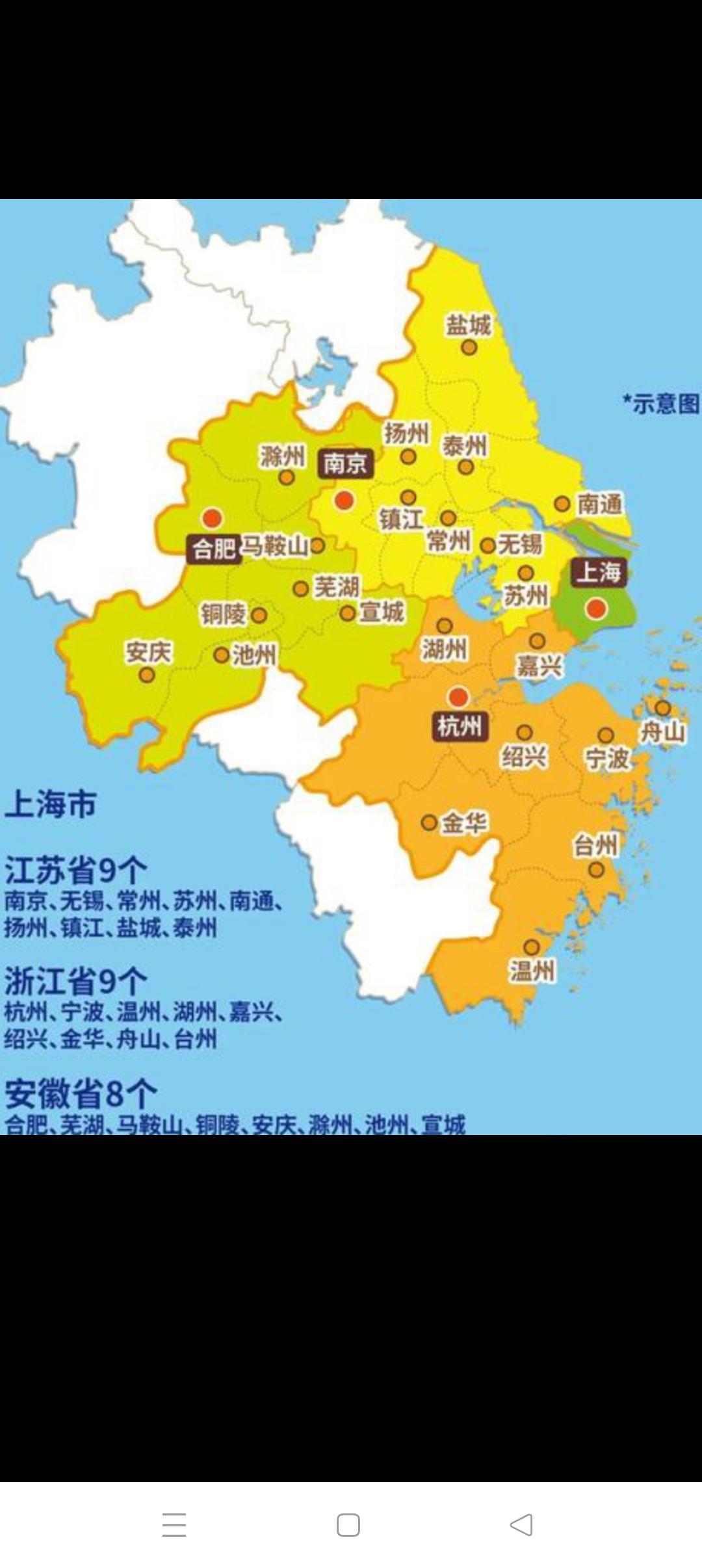 长三角地区究竟有多少个城市组成? 打开长三角地区的地图,同时冒岀了以下两个版本,一是长三角地区包括上海市、江苏省、浙江省、安徽省全境,共有41个城市组成(图1);二是长三角地区由上海市、江苏的9个城市、浙江的9城市、安徽的8个城市组成,共有27个城市(图2)。 笔者认为,上述两个版本都对,前一个是广义的长三角,后一个是狭义的长三角。 做大做强长三角的关键在于安徽振兴、苏北崛起、浙西腾飞。