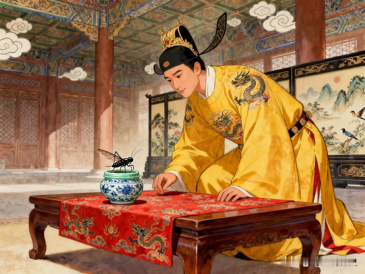 一个在《聊斋志异》里被艺术化的悲惨故事,让明朝的明宣宗朱瞻基背上了“蟋蟀皇帝”的名号长达500年,直到景德镇出土了一个陶罐…… 1993年,江西景德镇明代御窑遗址的考古发现,如同一声石破天惊的证言,从泥土中捧出了真相——一批写有“大明宣德年制”的官窑蟋蟀罐残片。这些精美绝伦的残器,无声却有力地坐实了深宫之内天子对于斗蟋蟀的狂热。一个被议论了五百年的传说,就此被文物证实。 明宣宗的人生,始于一个极具象征意义的梦境。据载,在他出生前夕,其祖父燕王朱棣梦见父亲朱元璋将象征权力的大圭赐予他,并说:“传世之孙,永世其昌。”朱瞻基的降生仿佛应验了这个吉兆,使他自幼备受朱棣宠爱与栽培。他最终不负厚望,统治期间与其父仁宗的时代合称为“仁宣之治”,国力强盛,库府充盈,被后世誉为明朝的黄金时期。 然而,就在这治世的荣光之下,另一幅画面却显得格外刺眼。皇帝对斗蟋蟀(促织)的痴迷,已远远超出了寻常玩好的界限,演变成一项波及甚广的行政任务。他认为北方蟋蟀不善斗,便派遣亲信太监远赴江南苏杭等地,设立专差,为宫廷采办上等蟋蟀。一道密旨,就让皇帝的私人爱好变成了压向地方的沉重负担。 皇帝的爱好,通过严苛的行政系统层层加码,最终化作民间家破人亡的惨剧。野史记载,苏州一位粮长因上司催缴蟋蟀,被迫用马匹换得一只良品,其妻好奇窥视时不慎让蟋蟀逃走,因惧怕责罚而自尽,粮长也随之身亡。蒲松龄在《聊斋志异·促织》开篇便点明“宣德间,宫中尚促织之戏,岁征民间”,并以此生发出一个孩子魂魄化蟋蟀以救全家命运的奇幻悲剧。 就在江南百姓为此苦不堪言之时,紫禁城深处的宣德皇帝,却在追求与此相关的极致“雅趣”。他不仅要求蟋蟀善斗,连蓄养蟋蟀的容器也须是顶级艺术品。这就是为什么1993年景德镇御窑遗址发现的那些蟋蟀罐残片如此重要:它们不是民间粗器,而是由当时最顶尖的官窑工匠,以制作皇家瓷器的标准与匠心烧制而成。罐体或施青釉,或绘青花,纹饰精美,底款工整。这些实物证据清晰地告诉我们,斗蟋蟀在宣德宫廷绝非一时兴起的消遣,而是一项制度化、精致化、且耗费巨大的宫廷活动。民间的哀歌与宫内的雅乐,就这样因一只小小的秋虫,形成了令人扼腕的对照。 宣德十年(1435年),年仅三十八岁的朱瞻基突然病逝。据传,深明大义的张太后为避免子孙重蹈玩物丧志的覆辙,下令将宫中所有玩好之物,包括那些精美的蟋蟀罐悉数砸毁掩埋。明宣宗朱瞻基