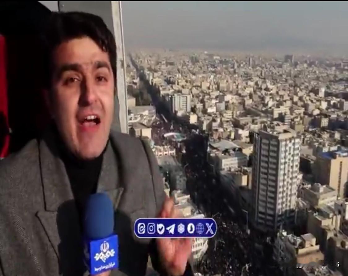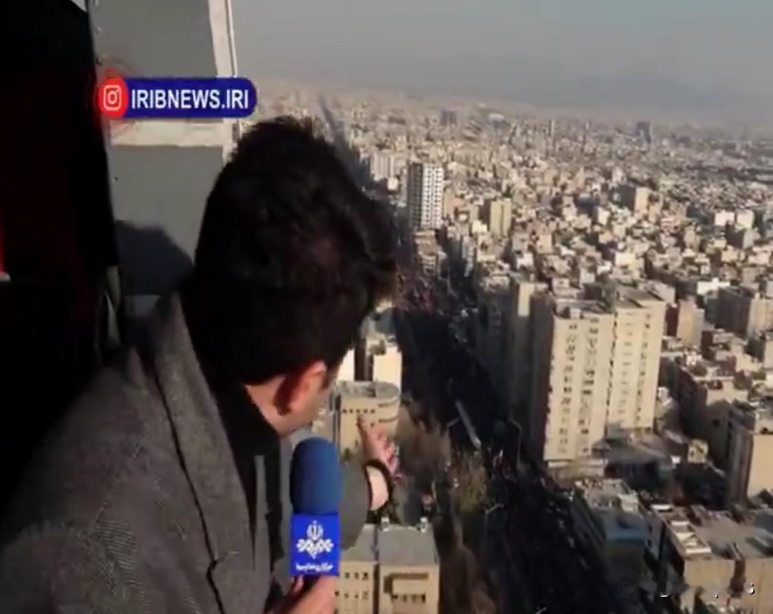 伊朗电视台记者在直升飞机上,播报德黑兰的情况,展示大批民众反对骚乱。不过,这名伊朗记者在直升飞机的舱门口,探出半个身子,去介绍远处画面,而且看起来没有系安全带,这样做还是挺勇敢的。 目前,伊朗德黑兰的局势趋于平稳,伊朗电视台进行了报道,展示了德黑兰处于平静之中。