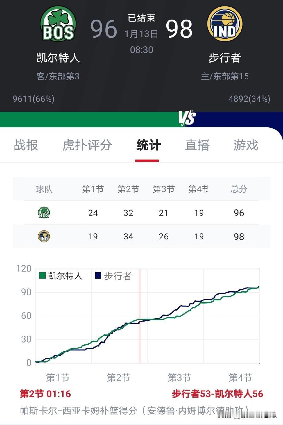 这还真不是爆冷,纯纯就是打不过,杰伦布朗的带队能力真的被低估了,有他的时候感觉凯尔特人队内好几个全明星,没了他连倒数第一的步行者都打不过。要知道有他的凯尔特人和西部第二的马刺打的难解难分,甚至少16个罚球都将悬念留到了最后。
