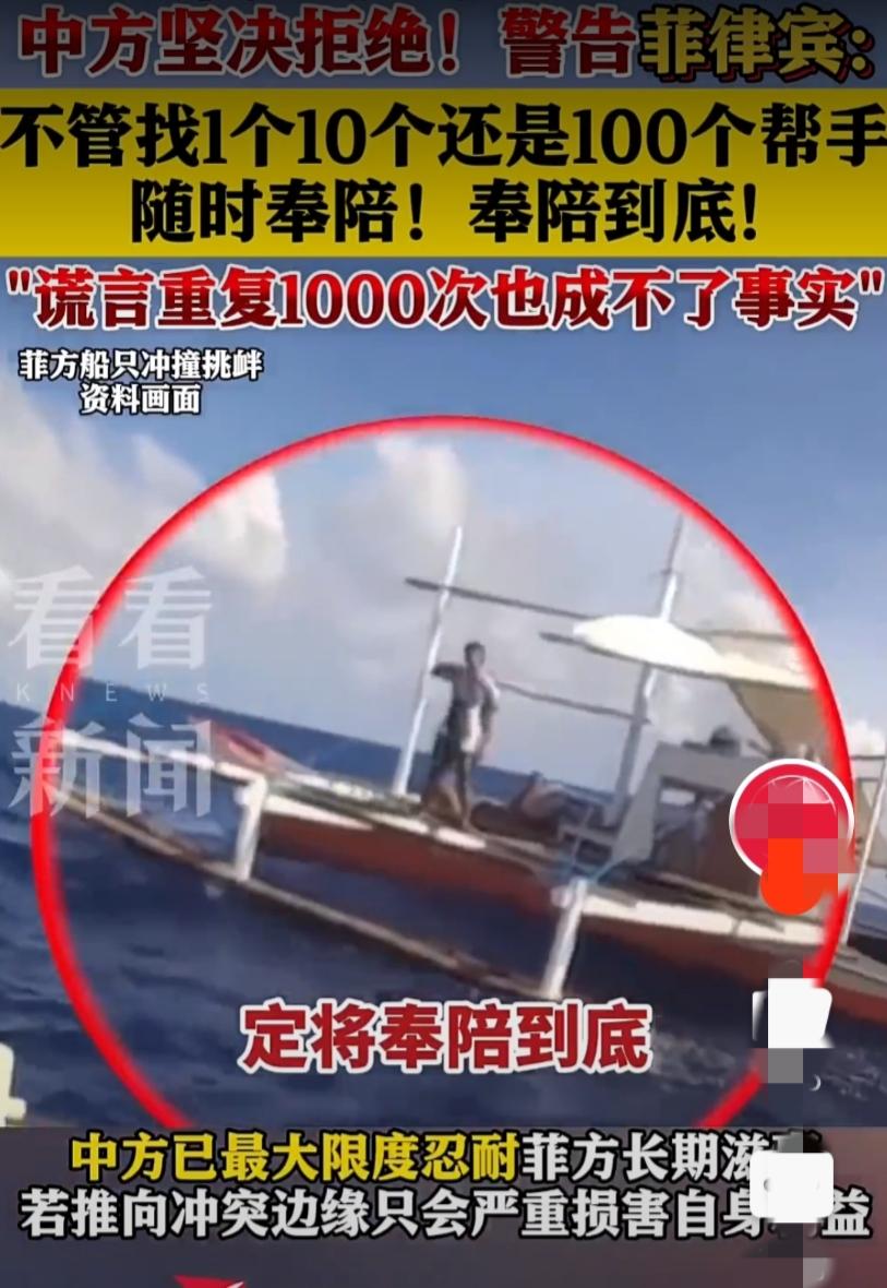 南海风云再起:中方警告菲律宾——找100个帮手也奉陪到底! 南海,这片碧波万顷的蓝色国土,再次成为世界瞩目的焦点。近日,针对菲律宾国家海事委员会的挑衅性声明,中国驻菲律宾使馆副发言人掷地有声地回应:“无论找多少帮手——1个、10个还是100个,中方随时奉陪,而且奉陪到底!”这不仅是外交辞令的强硬,更是国家意志的坚定宣示。 谎言重复千遍也成不了真理。菲律宾方面长期混淆领海与专属经济区概念,将中国在自家海域的正常活动污蔑为“非法”,甚至单方面发起无效的“南海仲裁”。殊不知,早在2006年,中国就已根据《联合国海洋法公约》做出排除性声明。菲方此举,无非是偷换概念、误导舆论的政治操弄。 回顾历史,真相不容篡改:1999年,菲方军舰在仁爱礁非法“坐滩”,谎称“缺零件”无法拖走,实则运水泥、送钢材,企图将其固化为永久军事据点;2023年以来,黄岩岛屡遭侵闯;2024年,菲海警船在仙宾礁非法滞留近五个月,甚至组织渔船冲击敏感海域。铁线礁在今年上半年更遭侵登30次!这些行径,严重破坏地区稳定,挑战中国底线。 中国始终秉持最大克制,坚持对话协商。但克制不是无限度的退让。当挑衅一再升级,当和平一再被辜负,我们有决心、有能力捍卫国家主权与领土完整。拉拢外部势力撑腰?在铁一般的事实和坚定的国家意志面前,任何“帮手”都改变不了历史与法理的真相。 南海的和平,需要尊重与对话,而非对抗与挑衅。我们愿以最大诚意维护地区稳定,但也绝不容忍任何越界之举。奉劝某些人:别把邻居的忍让当作软弱,别把国家的善意当作可欺。若执意将中菲推向冲突边缘,结局只会是自食其果。