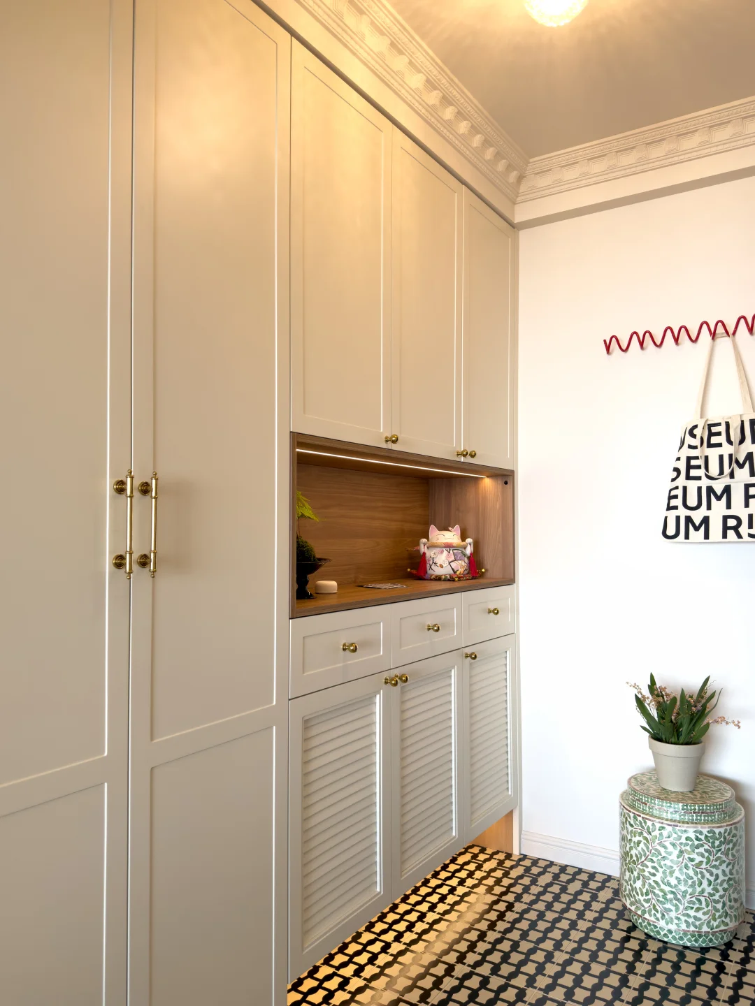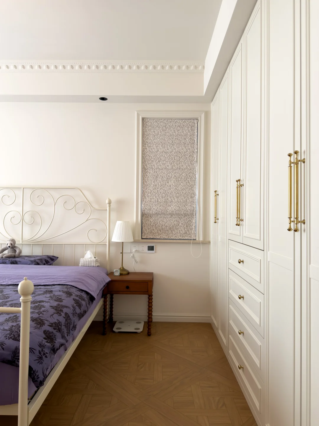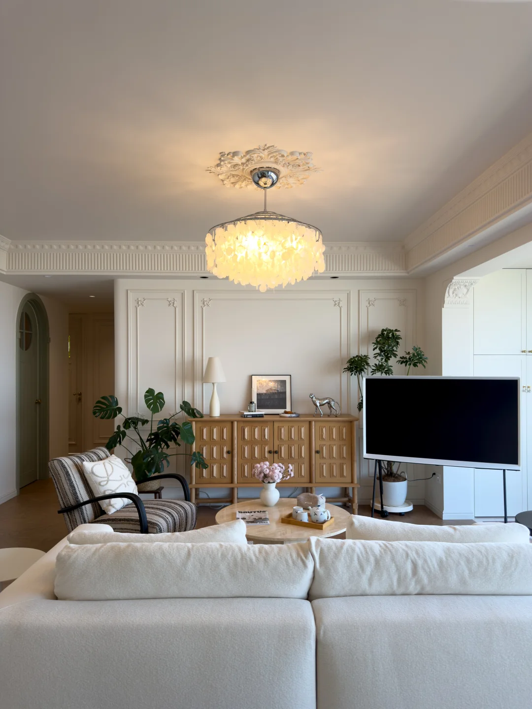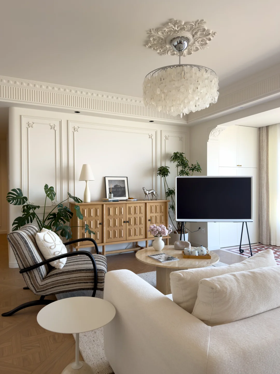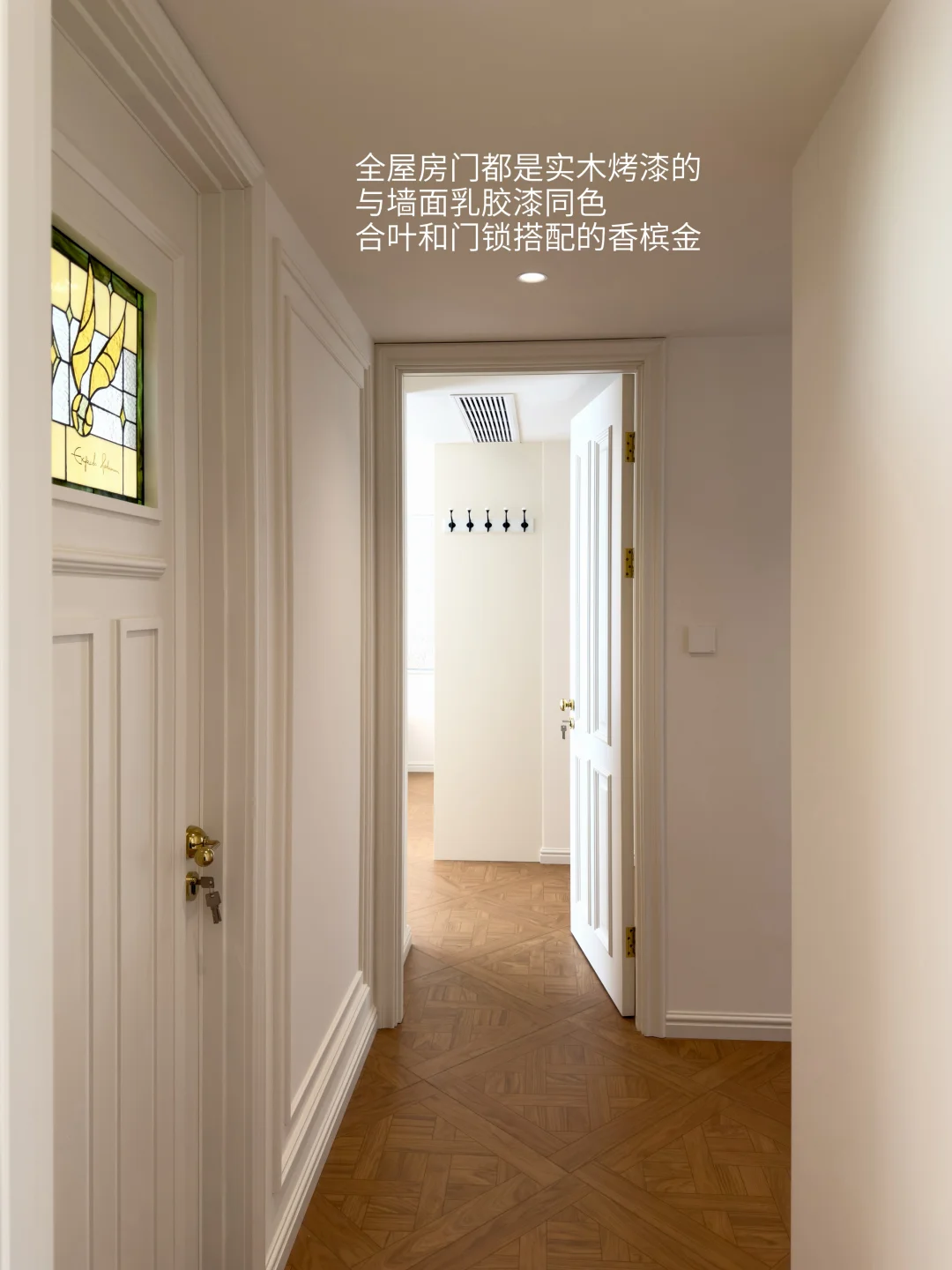 欢迎参观我们装修落地的新家˙✧˖°📸 ༘⋆。° 🏠建面162平,套内146平,4室2厅2卫 ✨🥂自然系法式复古,装修干货分享📝~ · 业主说入住以后,每天只想待在家里哪也不想去🥹 家里的一切都是按照自己的喜好和想法布置的🪄 每一个角落都是心动的样子,这大概就是装修的意义吧🤍~ · 🧾干货经验分享 1️⃣全屋通铺浅色木纹砖,600*600规格斜铺,和法式白色调适配度拉满,阳台和卫生间做了不同样式的花砖,大气又耐看! 2️⃣乳胶漆选了可可蛋奶,暖调奶茶色系温柔到哭,不发黄还不影响采光。 3️⃣全屋定制柜+实木烤漆房门,与乳胶漆同色,搭配金色复古拉手、门锁,法式复古的精致感拉满~ 4️⃣硬装造型做圆拱门、弧形垭口、pu线条勾勒、珍珠转,法式灵魂直接拿捏! 5️⃣软装搭配复古吊灯(花瓣/贝壳造型),布艺沙发、大理石茶几、配米白色亚麻纱帘,阳光透进来的时候,氛围感满满~ · (以上图片内容均为原创实拍案例‼️) · 𝐀𝐛𝐨𝐮𝐭|优木工房 深耕浙江地区全屋家具定制16年 家居美学|实拍案例分享|全屋定制|一站式服务 📝定制范围: 衣柜|橱柜|玄关柜|餐边柜|电视柜|书柜书桌|塌塌米|护墙|房门…等全屋木作 ·