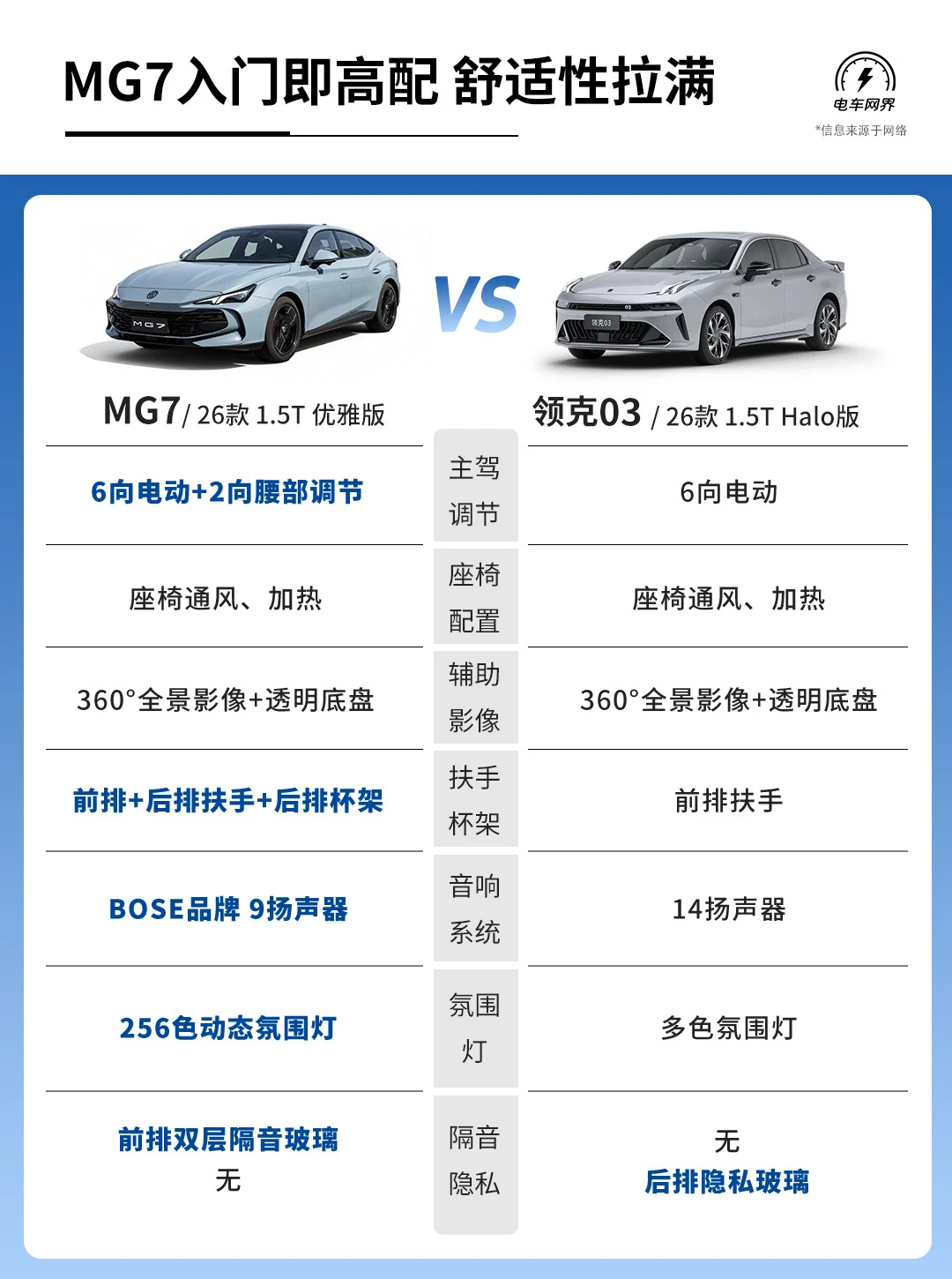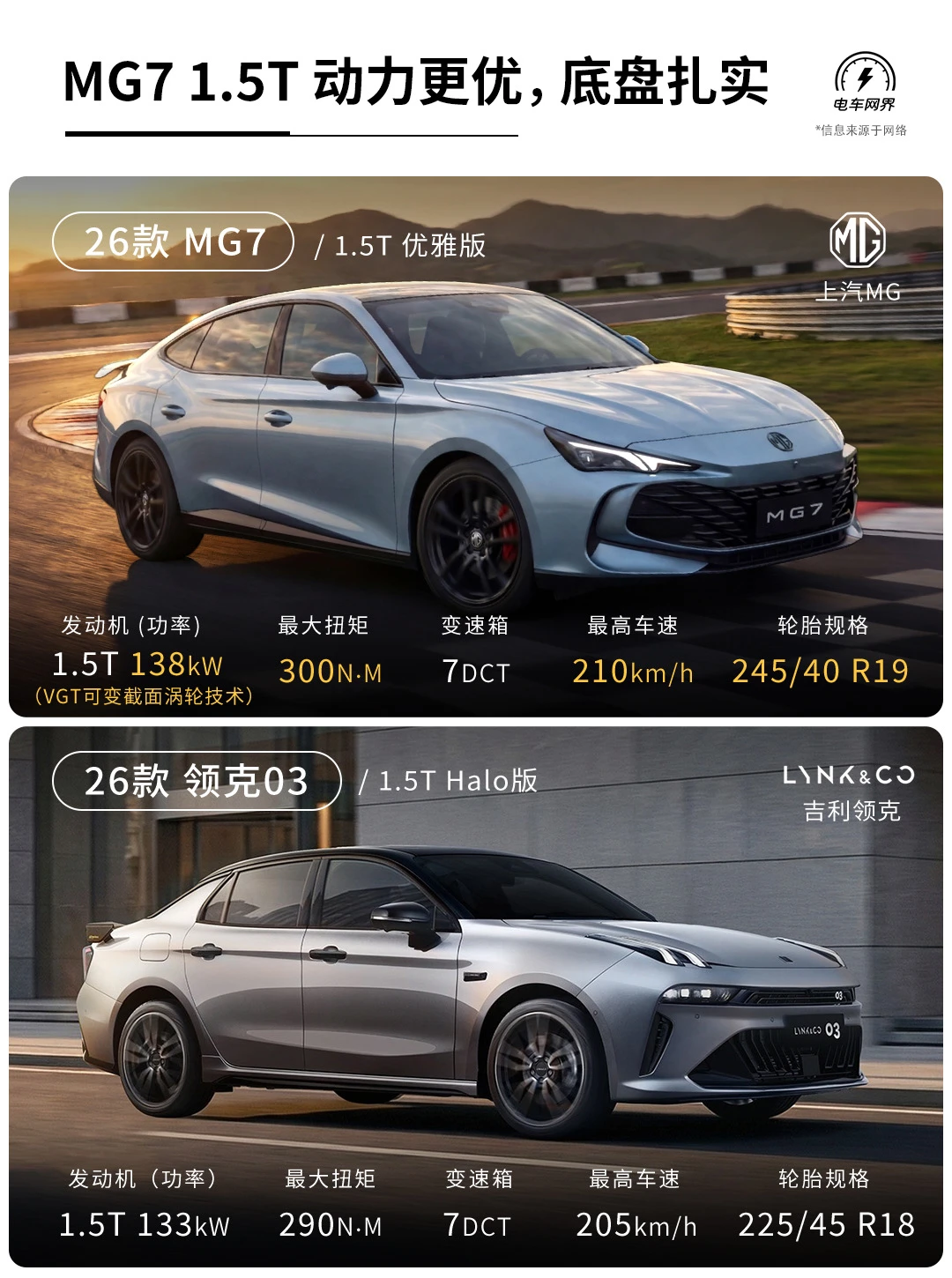 咱客观说,领克 03 1.5T 是台不错的运动轿跑,但架不住 MG7 动力更强、配置更全、价格更低。这笔账怎么算都该选 MG7 吧?你们觉得领克 03 还有机会反超吗?评论区聊聊!