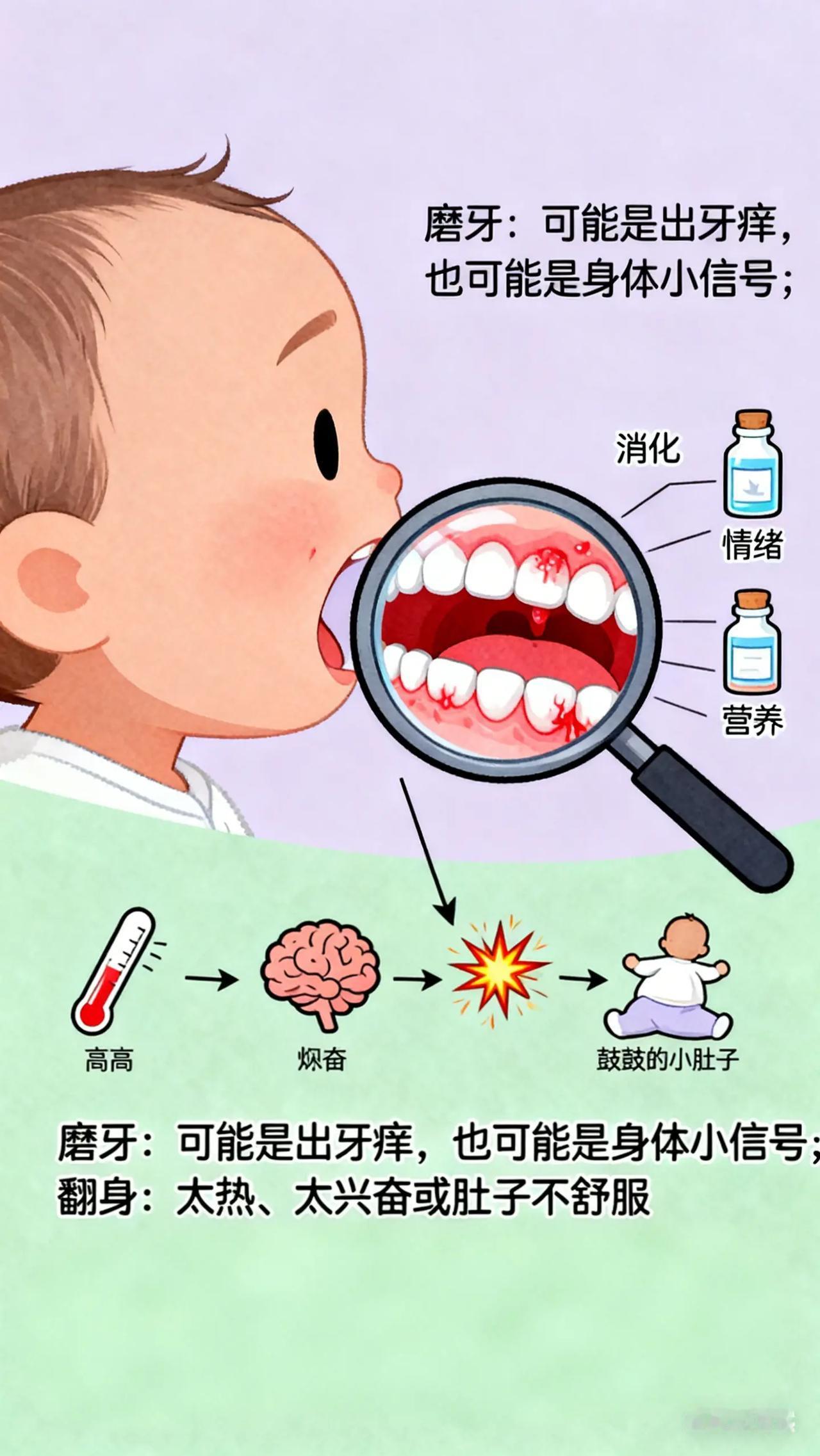 0-3岁宝宝睡眠攻略:攻克最后的难题。新手爸妈们,是不是感觉宝宝睡眠问题就像 “打地鼠”,刚解决一个又冒出一个?这次是宝宝睡觉时会磨牙,咯吱咯吱的声音听着让人揪心,担心会影响宝宝牙齿发育。还有,宝宝在睡眠中会频繁翻身,一晚上能从床头翻到床尾,好像一刻也不安稳,这到底是怎么回事,该怎么办呢?育儿经验分享 儿童教育 科普 新手父母必看