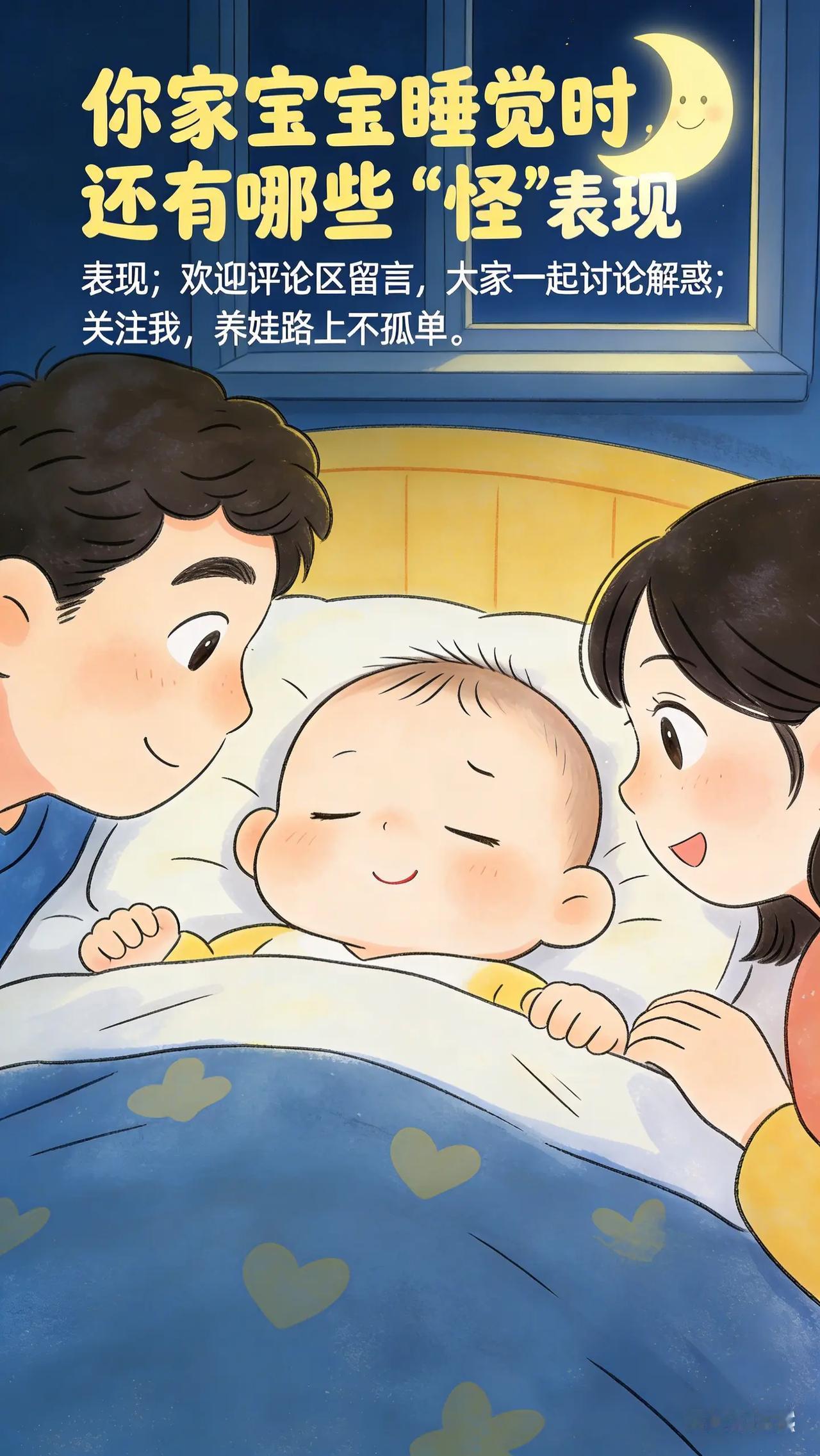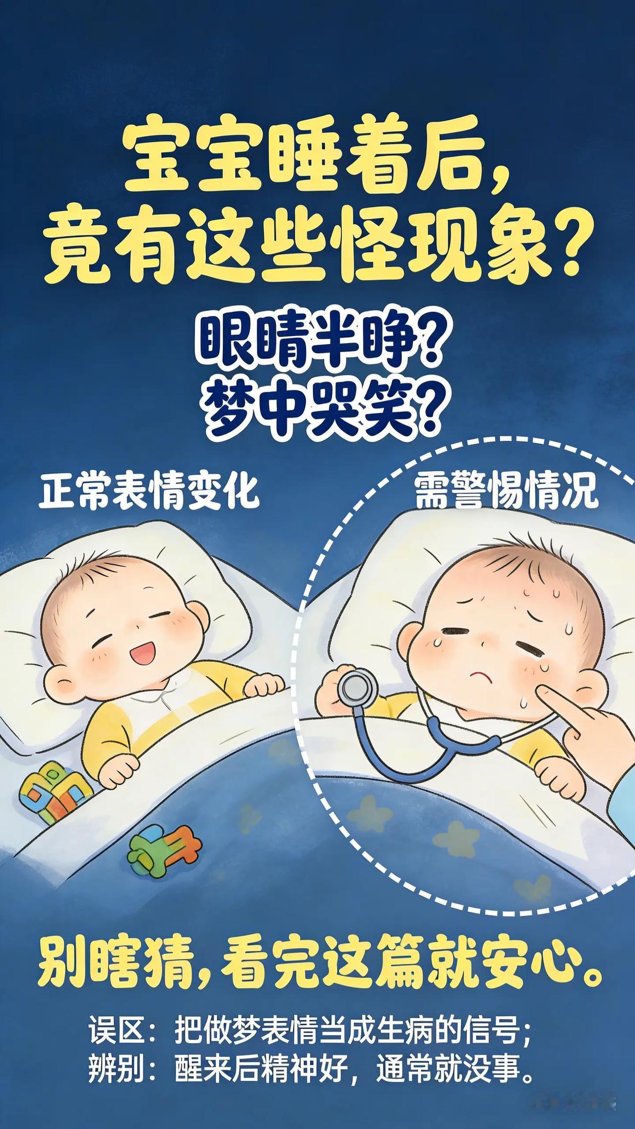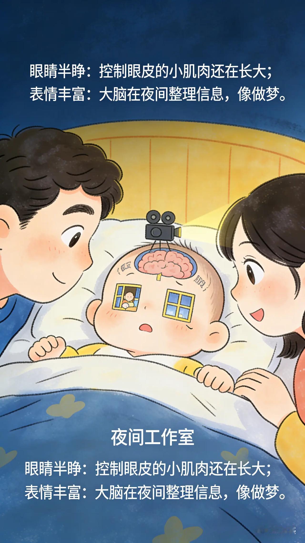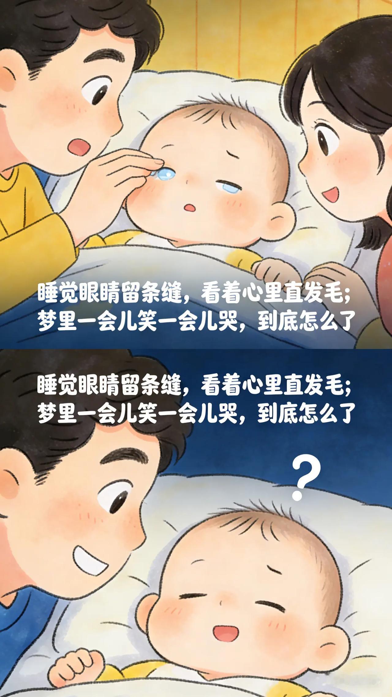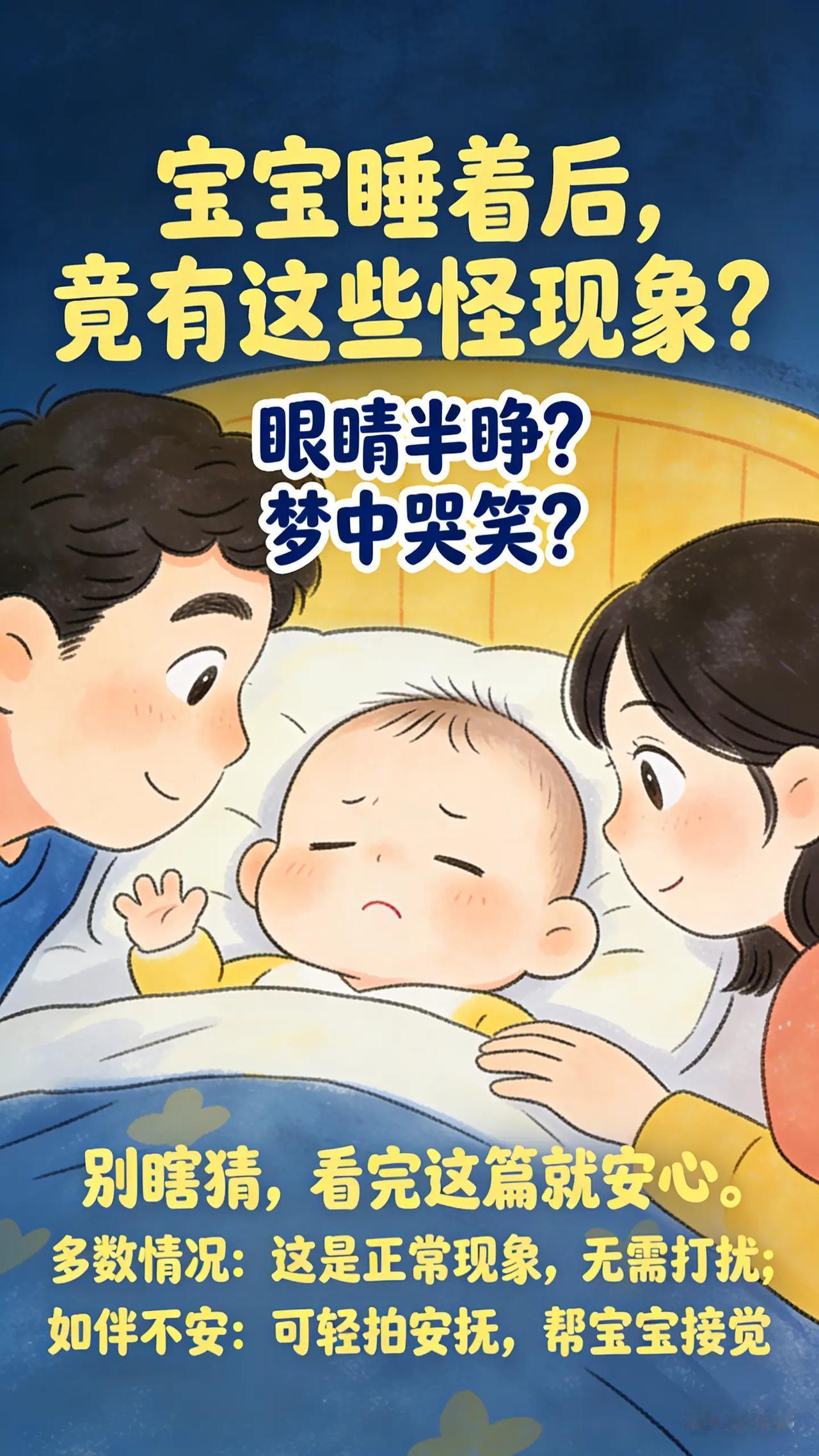 别担心!0-3岁宝宝这些睡眠现象有解。新手爸妈们,你们有没有发现宝宝睡觉时会出现一些奇奇怪怪的表现,比如睡觉时眼睛半睁着,看起来怪吓人的,担心宝宝是不是没睡踏实。还有,宝宝在睡眠中有时会突然笑出声或者皱眉头,表情丰富,这正常吗?这些现象让你们心里直犯嘀咕,又不知道该怎么办。育儿经验分享 新手父母必看 新手爸妈必看 新手父母带娃