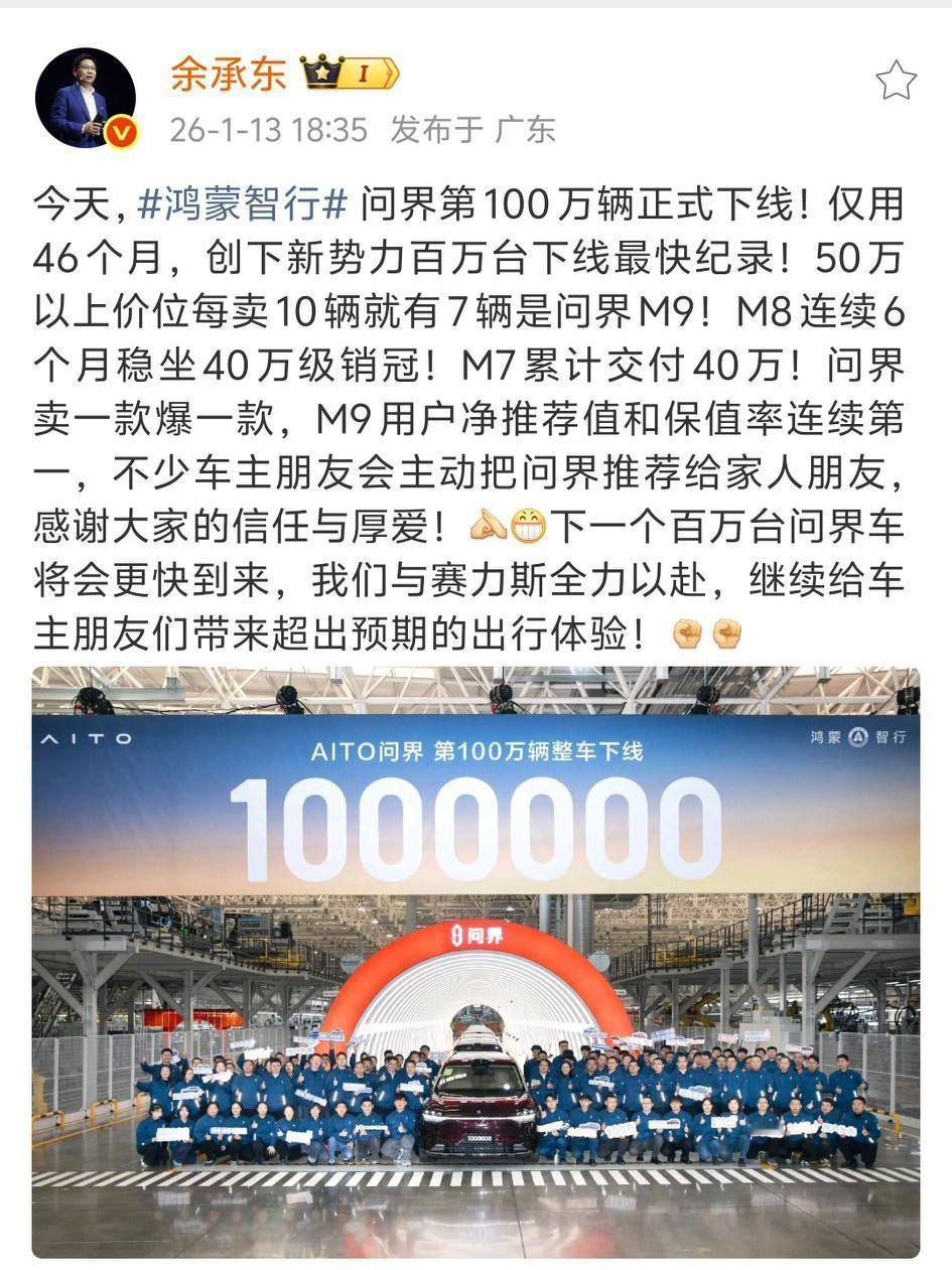 不得不说,余承东做事的风格和心胸太让人佩服了。他不参加问界第100万台下线仪式,