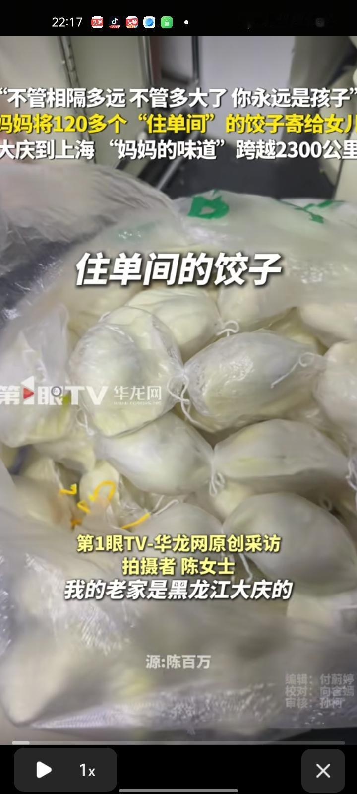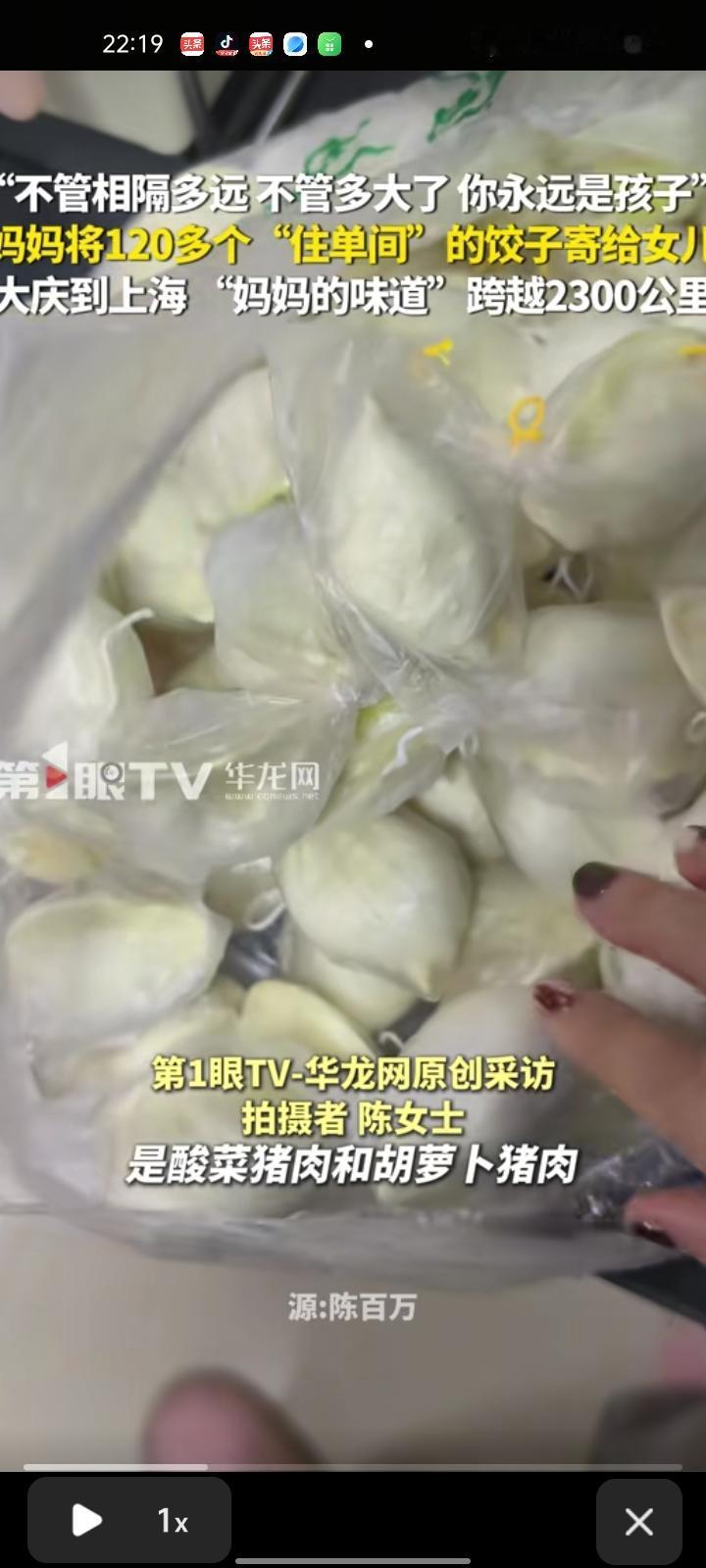 1月13日,上海。女子发视频称,自己老家在黑龙江大庆,目前在上海工作生活,和妈妈相隔2300多公里。这次妈妈寄来的是酸菜猪肉和胡萝卜猪肉馅的饺子,因为自己包不出妈妈的味道。怕饺子化了黏在一起,妈妈把饺子一个一个用绳子隔开,每四个一装袋,光打包就一个多小时,拆开快递就很惊讶又很感动,感慨道:不管相隔多远,不管多大了,你永远是孩子