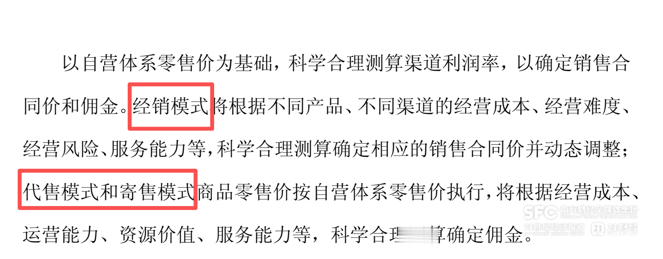 公告明确,“代售模式和寄售模式商品零售价按自营体系零售价执行,将根据经营成本、运营能力、资源价值、服务能力等,科学合理测算确定佣金。”