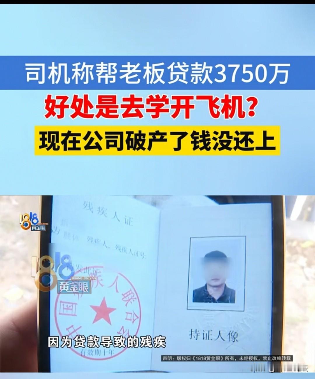 “帮老板贷款3750万,却落得脑梗致残!”金华,男子入职装饰公司当司机,受老板厚待后,被以“考飞机驾照”为诱饵,先后3次以个人名义代贷,资金全入公司账户。如今公司变卖资产得7亿,他却遭银行起诉,巨额债务压垮身体,只求老板还清欠款并赔偿损失。 素材:1818黄金眼 2026年1月12日 2011年,焦先生经朋友牵线,进了金华一家装饰公司,给老板王某当专职司机。刚上班那会儿,王老板待他是真不错,嘘寒问暖的,焦先生心里一直记着这份情分。 2012年开始,公司给焦先生发的年终奖一年比一年丰厚,比同岗位的人多出不少; 2013年焦先生回湖北老家办婚礼,老家离金华一千多公里,王老板一家居然开着房车跑过来赴宴,还塞了个厚厚的红包。 这些事儿让焦先生彻底放下了防备,觉得能遇上这么大方又重情义的老板,真是自己的福气,之后王老板说什么,他基本都没二话。 婚礼结束没多久,王老板找到焦先生,一脸诚恳地说公司最近资金周转不开,想以他的名义向银行贷1000万。 为了让焦先生放心,王老板拍着胸脯保证,公司有足够的抵押物,还款的事儿压根不用他操心,还笑着说:“等公司资金缓过来,我立马送你去学飞机驾照,圆你个飞行梦!” 一边是老板平日里的真心相待,一边是自己盼了好久的飞机驾照,再加上有“抵押物”这个定心丸,焦先生没多想就答应了。 2014年12月,他跟着公司财务一起去了银行,俩人各自以个人名义,帮公司贷了1000万。 贷款一到账,就全转到了公司账户上,焦先生一分钱都没碰过,只是偶尔听财务说,利息一直在正常付着。 可好日子没持续多久,才付了几个月利息,焦先生这笔贷款的利息就断了。 他急急忙忙找到财务总监问情况,对方却不当回事儿似的安抚:“别急别急,公司就是暂时手头紧,过阵子就好了。” 让焦先生越想越气的是,后来他才知道,财务以自己名义贷的1000万,利息一直没断过,偏偏就停了他的。 气不过的焦先生在公司闹了一场,没想到反倒被王老板的弟弟劈头盖脸批评了一顿,说他“没事找事,不懂得体谅公司的难处”。 焦先生心里憋屈得慌,想着多一事不如少一事,就没再追究,可他怎么也没想到,这只是噩梦的开始。 趁着焦先生还在公司上班,对他还没完全失去信任,王老板悄悄拿走了他的身份信息,在义乌注册了一家新公司。 紧接着,又以这家新公司的名义,用焦先生的身份又贷了1900万。 没过多久,王老板又找上门,说“公司急需资金周转”,软磨硬泡让焦先生再帮一次忙。焦先生架不住对方反复劝说,又被迫签字贷了850万。 算下来,焦先生以个人名义帮公司贷的钱,已经高达3750万。 他不是没担心过风险,但每次王老板都拍着胸脯说“很快就能还款”“绝对不会让你吃亏”,这些口头承诺,一次次让他放下了顾虑。 可日子一天天过去,公司的经营状况不但没好转,反而越来越差,所有贷款的利息都陆续停了,银行的催收电话开始天天打过来,焦先生的手机就没安静过。 为了这事,焦先生跑前跑后求证,才发现王老板当初说的“充足抵押物”,根本就是子虚乌有。 巨大的债务压力压得他喘不过气,晚上翻来覆去睡不着,精神一天比一天差,身体也渐渐扛不住了。 2018年,焦先生突发脑梗,虽然抢救回来了,却落下了严重的后遗症,右边身子完全动不了,成了残疾人,吃喝拉撒都得靠家人照顾。 可这时候的王老板,早就没了以前的“和善”,面对焦先生的质问,要么躲着不见,要么找各种理由推脱。 更让焦先生气愤的是,后来他才知道,王老板的公司虽然破产了,但变卖资产后拿了7亿元回款,足够还清那3750万贷款,可王老板却压根没想着先还这笔以他个人名义借的钱。 银行催了好几次都没结果,最后把焦先生告上了法庭。 现在的焦先生,银行账户被冻结了,唯一的房子也被查封,每个月就靠一点低保过日子,还要花不少钱做康复治疗。 以前他是家里的顶梁柱,现在却成了家人的累赘,这让他心里比刀割还难受。 焦先生的诉求很明确:“第一,王老板必须用公司变卖的7亿元,把以我名义贷的3750万还清,把我银行的不良征信记录撤销掉; 第二,这些年因为这笔债,我精神垮了,还得了脑梗成了残疾人,王老板得赔偿我的医疗费、残疾赔偿金、误工费这些所有损失。” 《民法典》第六百六十九条:订立借款合同,借款人应当按照贷款人的要求提供与借款有关的业务活动和财务状况的真实情况。 要是王老板当初隐瞒了公司的真实财务情况,骗焦先生帮着贷款,那可能构成欺诈,焦先生可以凭着这个追究他的责任。 《民法典》第一千一百七十九条:侵害他人造成人身损害的,应赔偿医疗费、残疾赔偿金等合理费用。 如果焦先生能拿出证据,证明自己的脑梗是因为王老板的欺诈性贷款行为导致的,那就可以要求王老板赔偿人身损害的相关费用。 对于焦先生的遭遇,大家如何看?