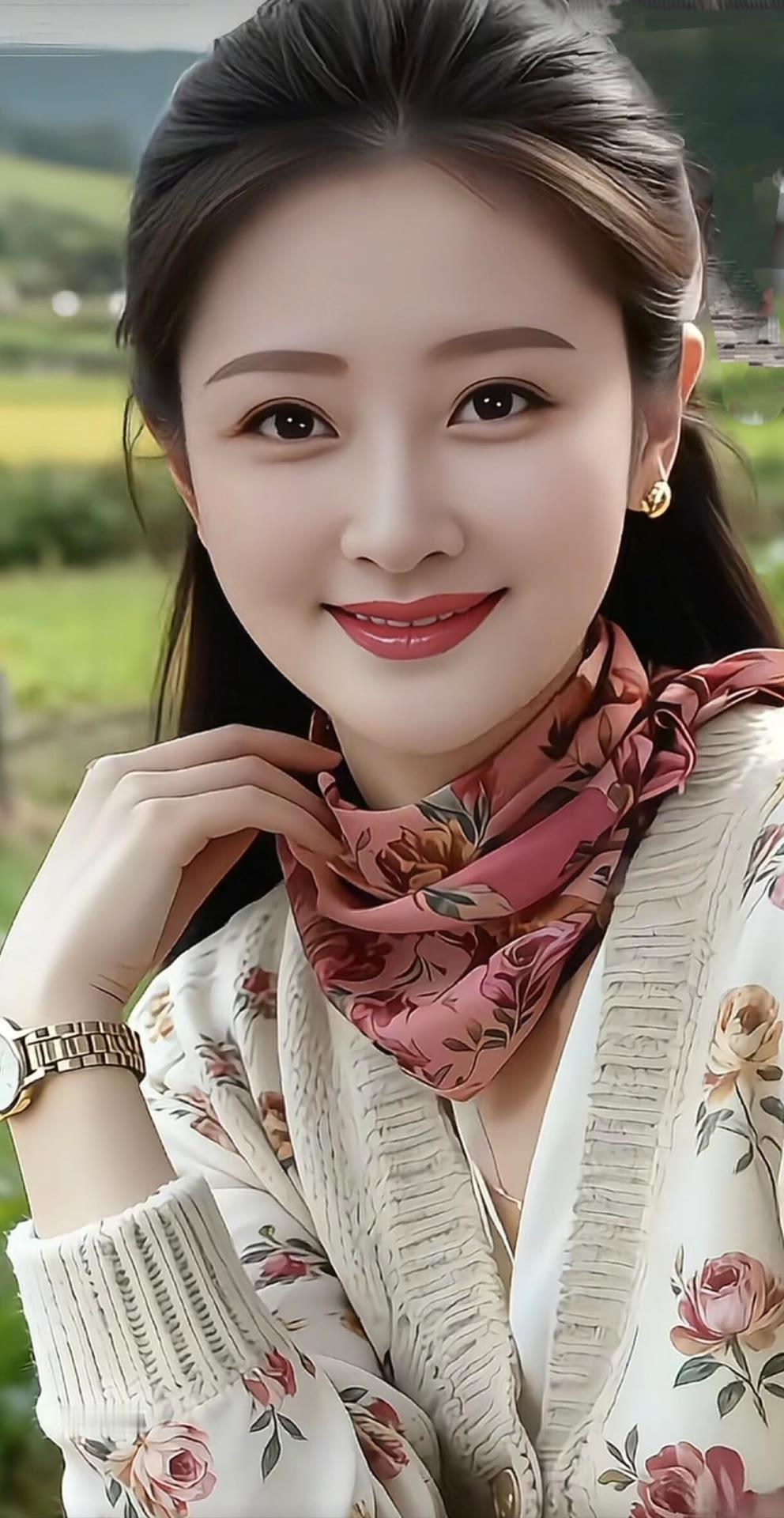 优雅气质,花巾点缀,时尚穿搭,自信微笑
