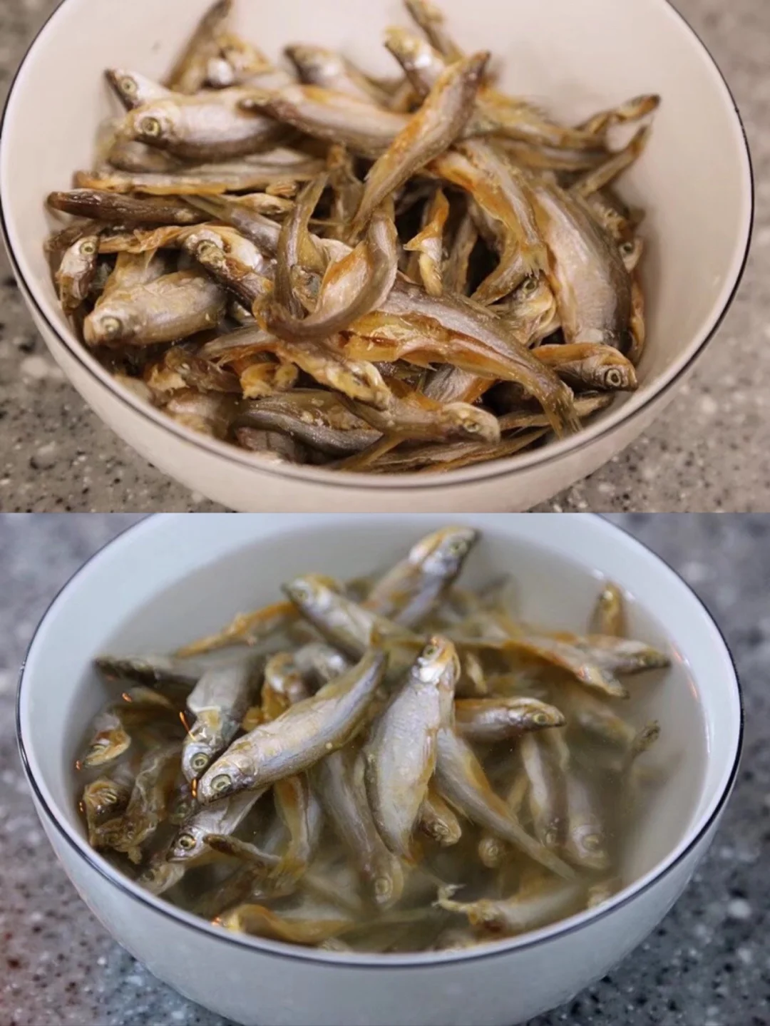 小鱼干一盘 毛豆米一小碗