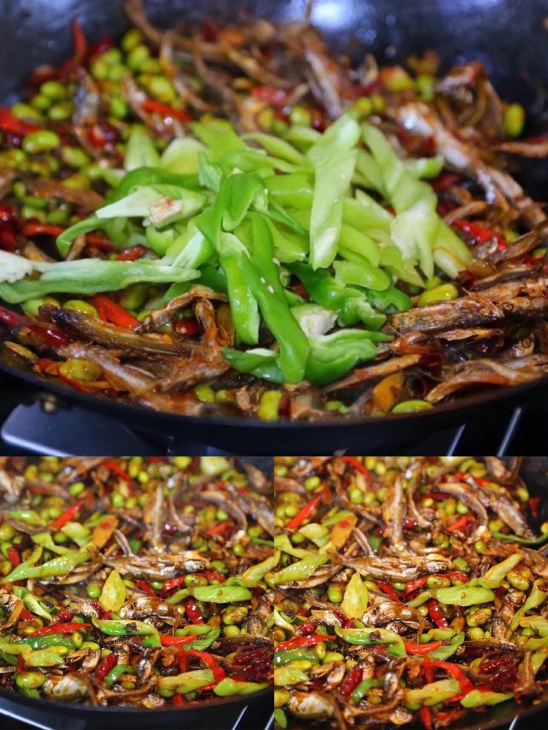 17.炸好的鱼干儿也丢进去快速翻炒均