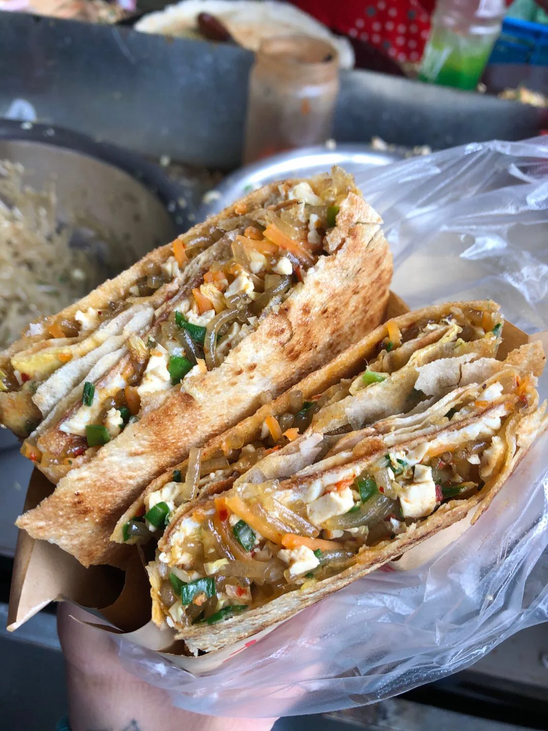 我也不知道这个是哪里的饼,叫啥名字反正就觉得好实在,七块钱一个,里面放多少料自己舀,闺蜜说要不是馋这个饼她都不会陪我去买菜[害羞R][害羞R]其实两个人一个饼刚刚好,然而闺蜜说她自己要吃一个 那么我只能剩一半儿了,你们也喜欢吃吗 我觉得还可以在里面放里脊肉啥的,哈哈谁叫我爱吃肉呢