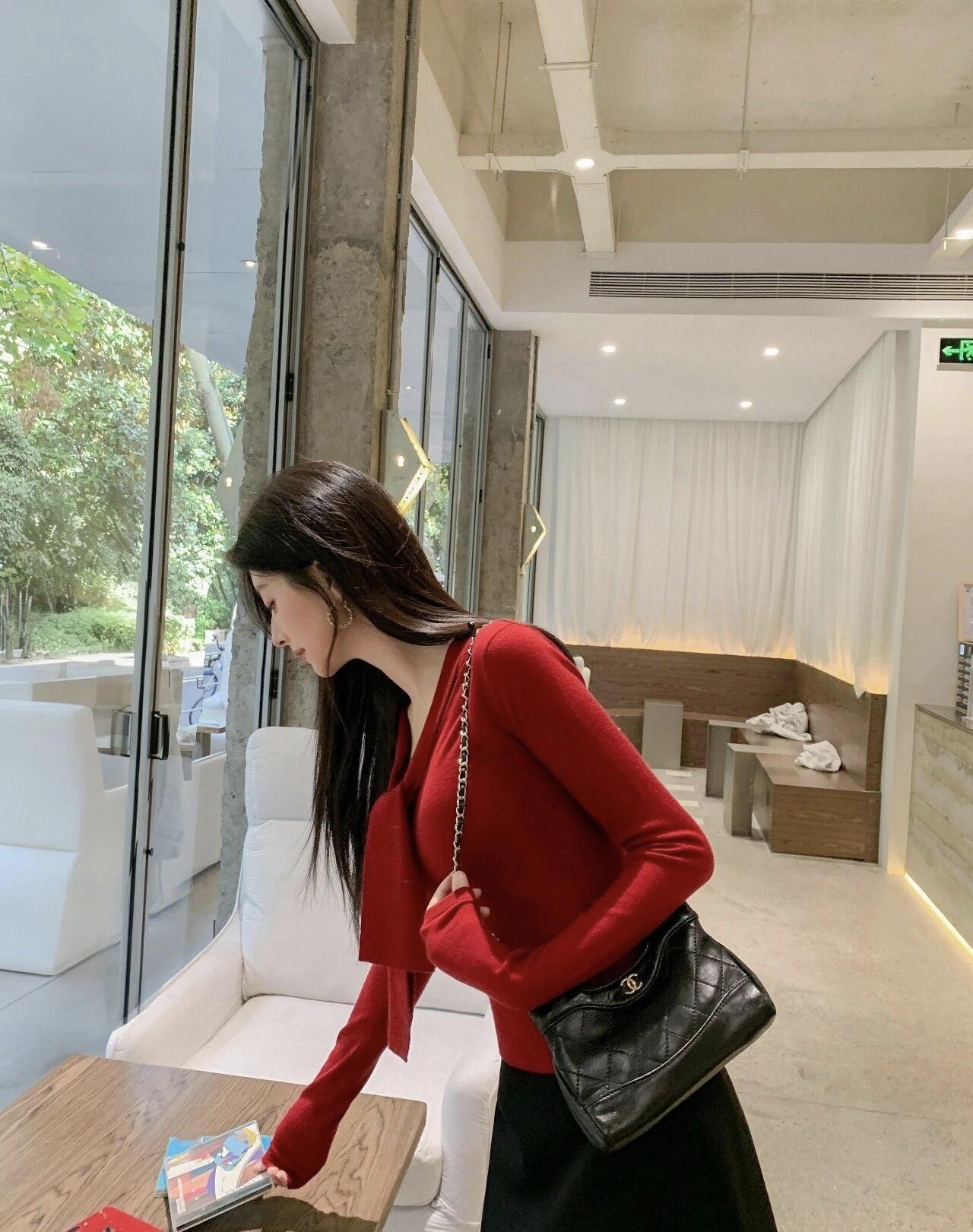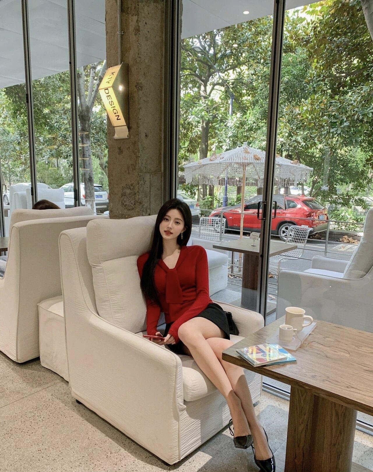 红衫配日常,慵懒与精致撞个满怀,在街角的咖啡店捕捉片刻松弛✨