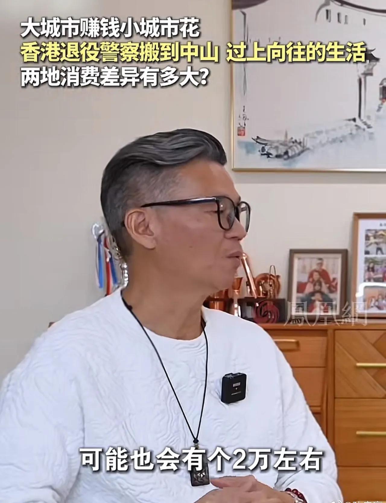 看到凤凰卫视的一个视频,采访了一个香港退休的警察,在中山生活。 退休能领一次性退休金100多万,每个月退休补助还有2万,这个钱在香港不算多,但是在中山生活那简直是天堂。 有时候真羡慕这些在珠三角生活的港澳同胞,赚的多,消费低,花又花不完,真的很爽。 视频里的阿sir穿着polo衫,坐在自家带小院的房子里喝茶,说起现在的日子,脸上全是藏不住的惬意。他说在香港住了大半辈子,挤在四十多平的老房子里,连转身都费劲,退休后揣着退休金来中山看房,当场就定了套一百多平的三居室,算下来才花了不到两百万,手里的钱还绰绰有余。 这可不是个例,现在中山、珠海、东莞这些地方,随处可见操着粤语的港澳老人。他们早上慢悠悠去茶楼喝早茶,一盅两件能坐一上午,下午去公园下棋遛鸟,晚上在小区楼下的菜市场买点新鲜菜,日子过得悠闲又自在。两万一月的补助,在香港可能也就够个房租和日常开销,在中山却能活得相当滋润,不仅能吃得好住得好,还能时不时出去旅个游,给孙辈买点礼物。 有人说这是“降维打击”式养老,这话一点不假。港澳的工资水平本就比珠三角高出一截,退休金自然也跟着水涨船高,再加上大湾区的同城化福利,医保互通、交通便利,一张港澳通行证就能随时往返,根本没什么生活隔阂。更别说珠三角的物价,比起香港那可是温柔太多,一碗云吞面在香港要三十多港币,在中山十来块人民币就能吃得很满足,这种性价比,换谁不心动。 当然也有人酸,说这些港澳同胞是占了大湾区发展的便宜,可反过来想想,他们年轻时在香港打拼,交税、贡献,退休后选择来珠三角养老,其实也是在带动当地的消费,给社区添了不少烟火气。那些说风凉话的人,大概率是没体会过在大城市挤破头的滋味,也不懂这种“赚得多、花得少”的快乐有多难得。 这位香港阿sir说得实在,退休图的就是个舒心。在香港,拿着两万补助可能还是个普通人,在中山,却能过上有房有院、衣食无忧的好日子。这种选择,无关对错,只关乎生活质量。毕竟人活一辈子,不就是为了老了能享享清福吗? 各位读者你们怎么看?欢迎在评论区讨论。