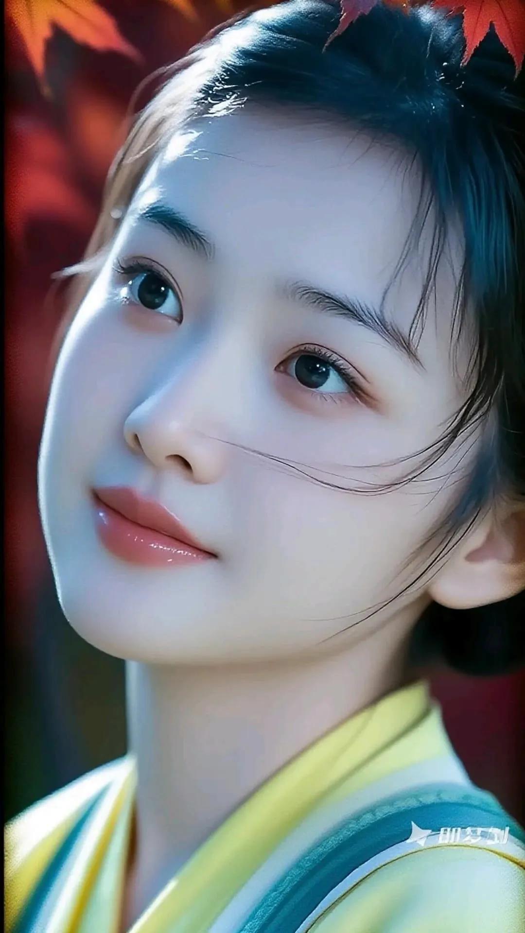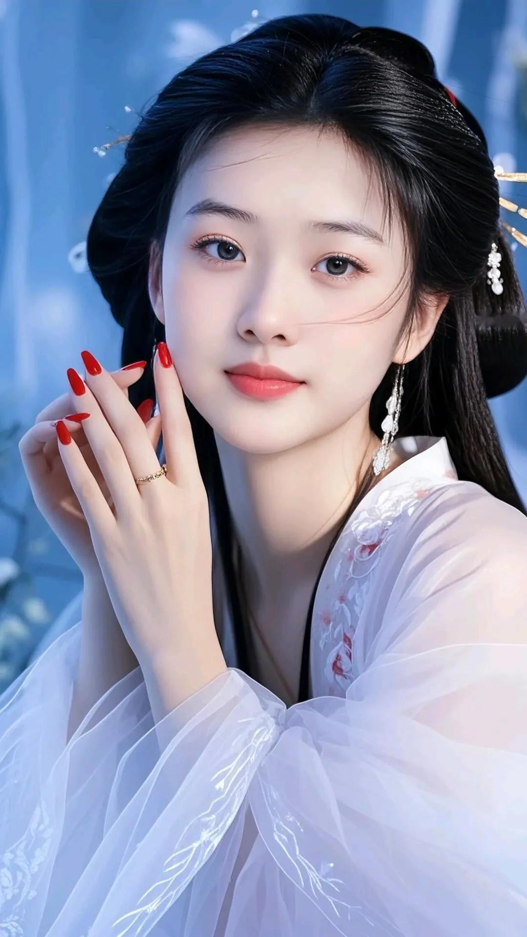 古典美人,黑发如瀑,红妆似火,韵味十足。