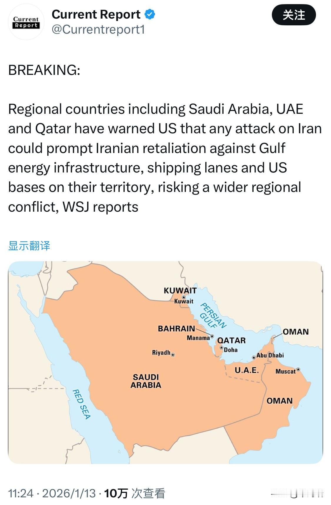 据《华尔街日报》报道,包括沙特阿拉伯、阿联酋和卡塔尔在内的地区国家警告美国,任何对伊朗的攻击都可能引发伊朗对海湾能源基础设施、航道以及美国在其境内的军事基地进行报复,从而有可能引发更大规模的地区冲突。