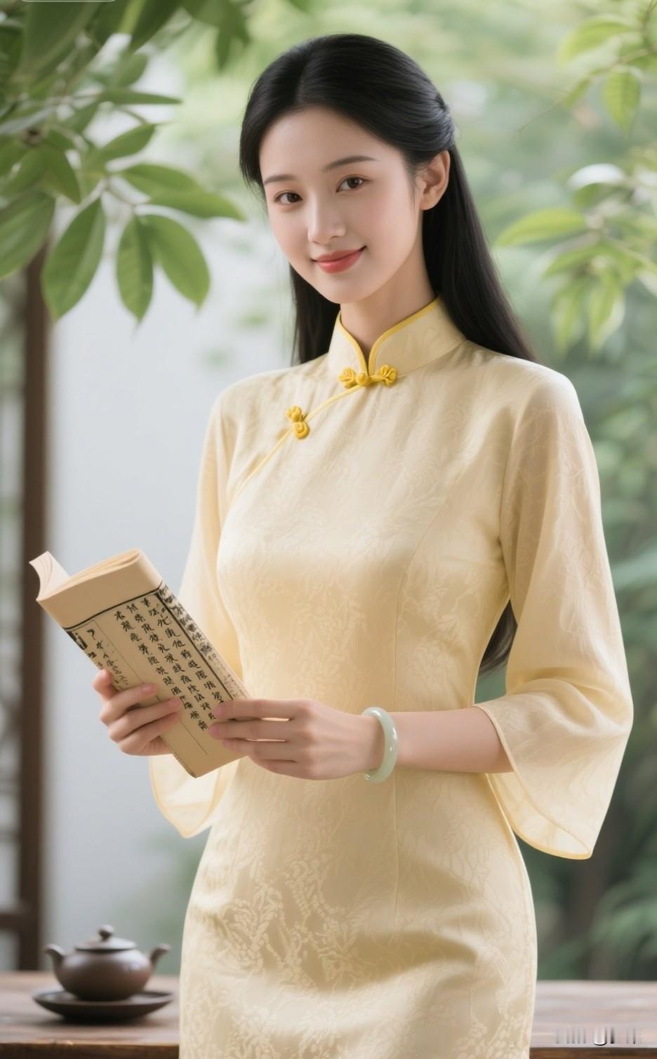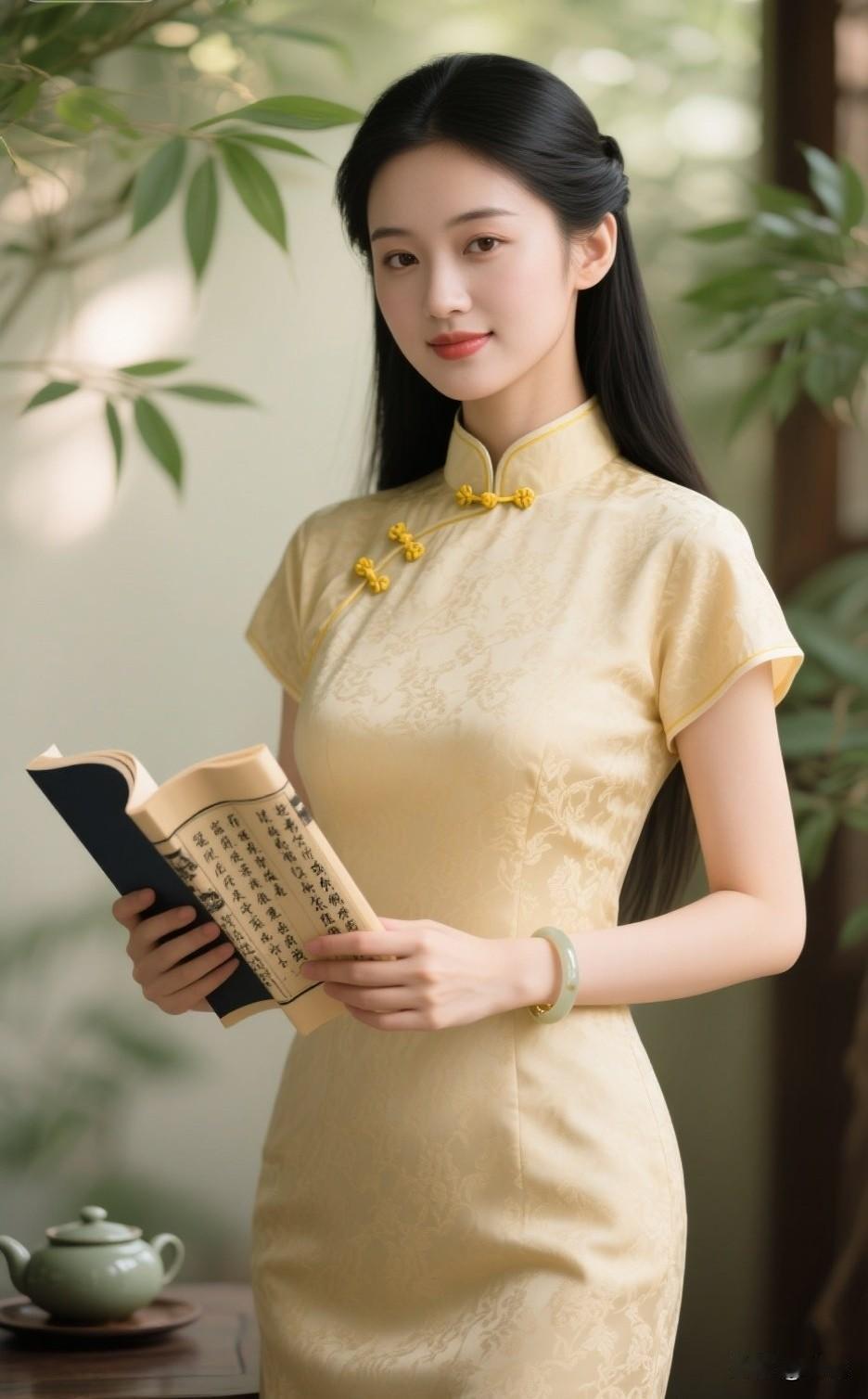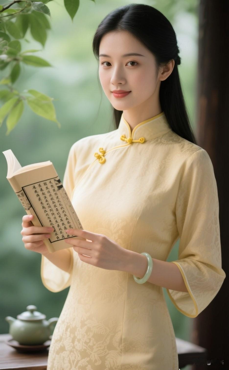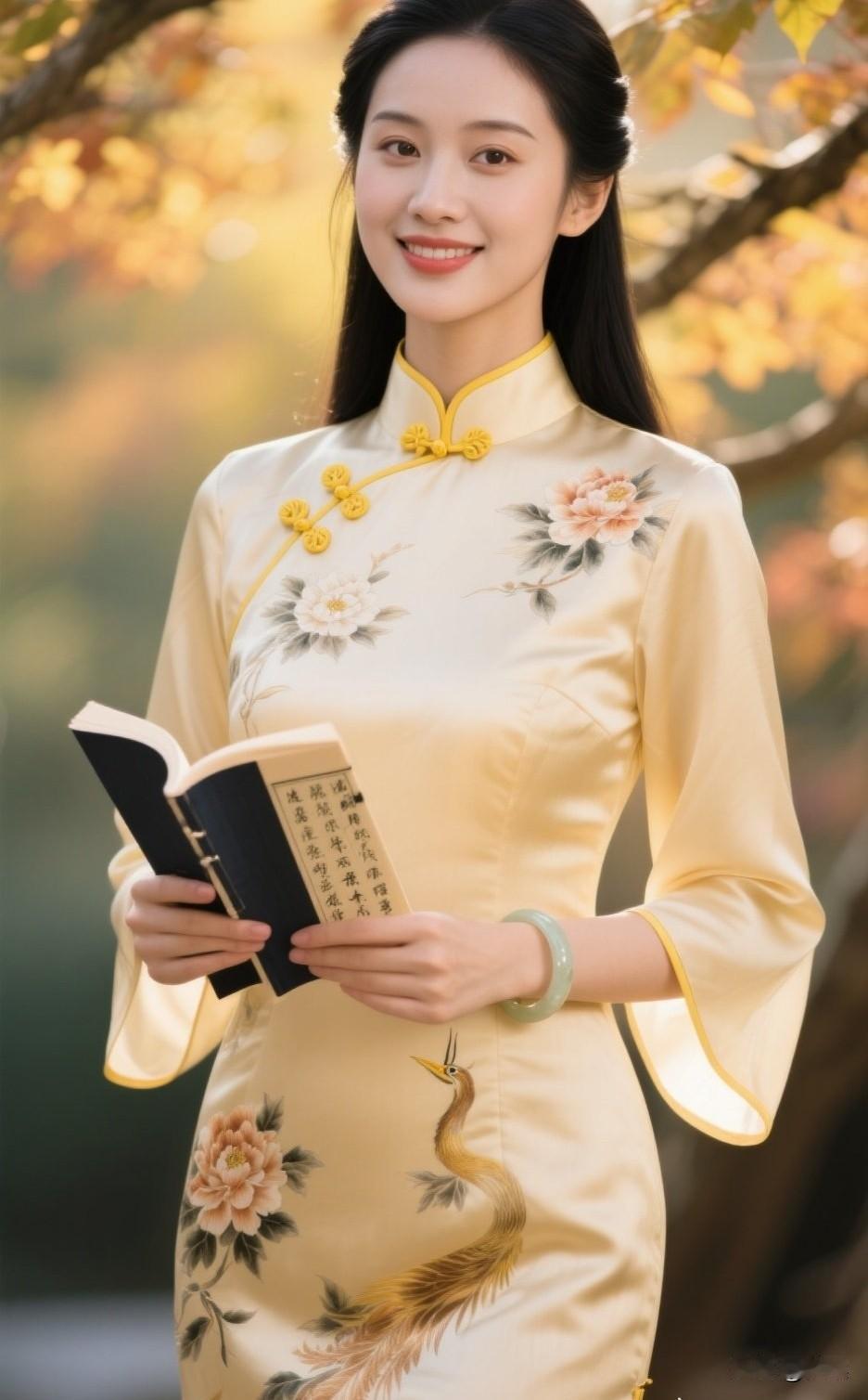 秋日暖阳下,优雅旗袍少女手持古书,尽显古典韵味。旗袍古典美女 旗袍少女照 旗袍女