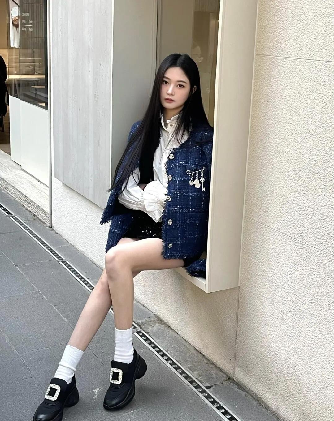 电梯间的随手拍|菱格纹开衫+小黑裙是今天的松弛感密码~发带一戴,甜妹氛围感直接拉