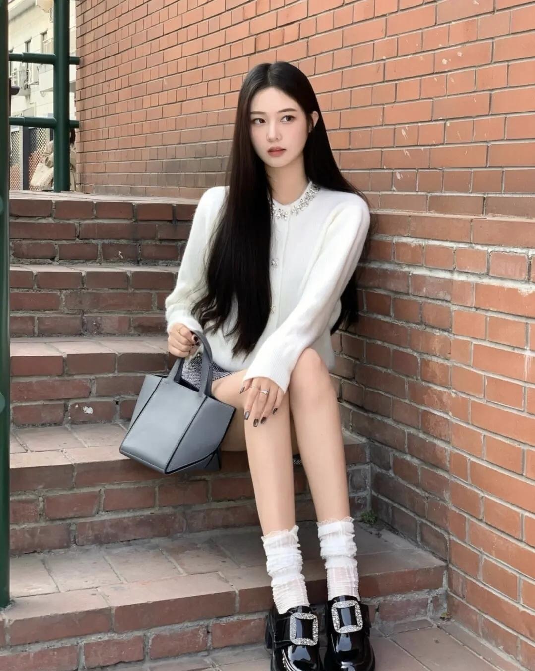 秋意裹在风里,白针织衫刚好衬得天气温柔。随手抓的包、没打理的头发,都是今天的松弛
