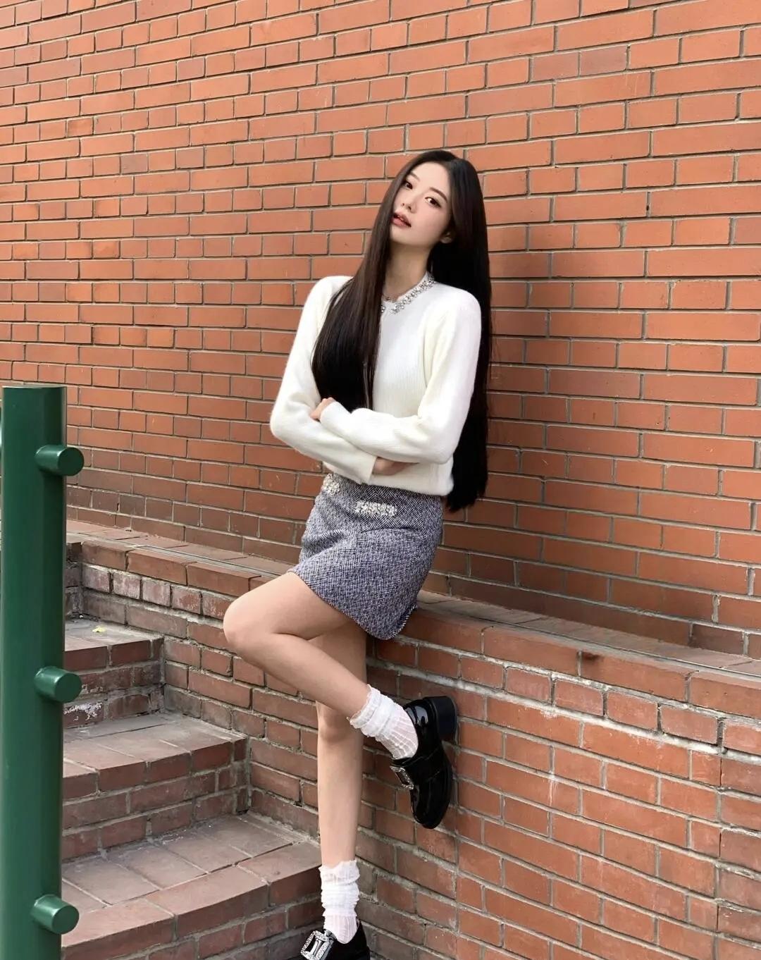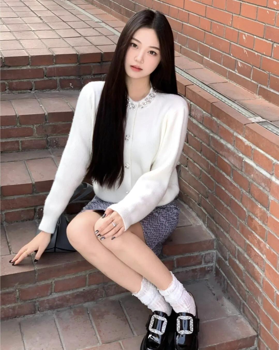 红砖台阶藏着温柔,白衫与碎钻撞出甜酷的浪漫,风掠过发梢时,连时光都放慢了脚步