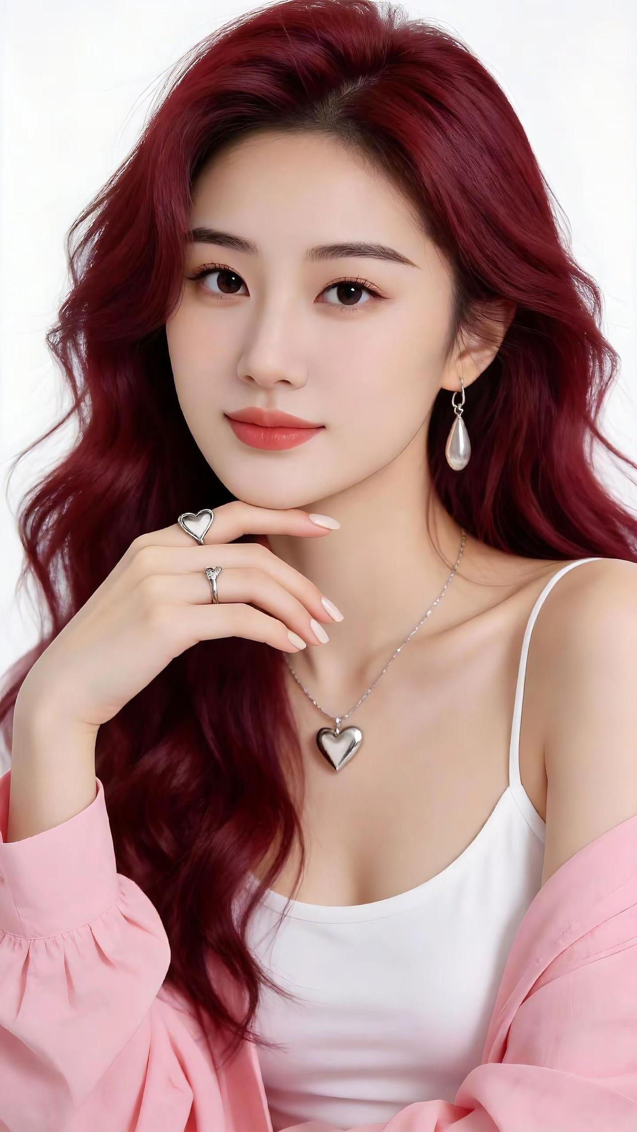 谁能拒绝酒红色卷发的心动暴击?评论区说说你被哪个细节戳中了~高颜值美女 酒红色发