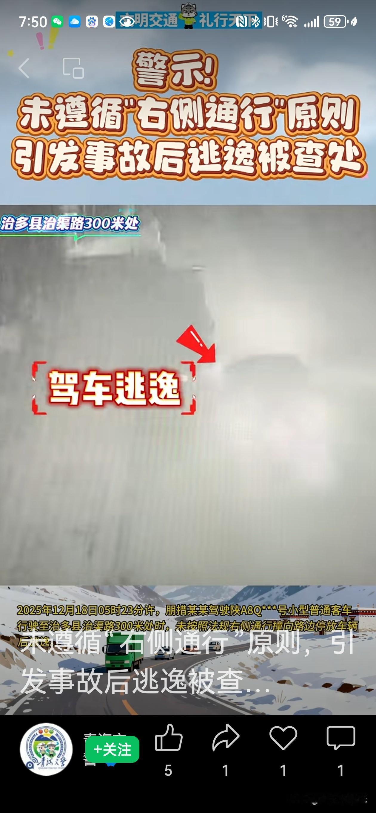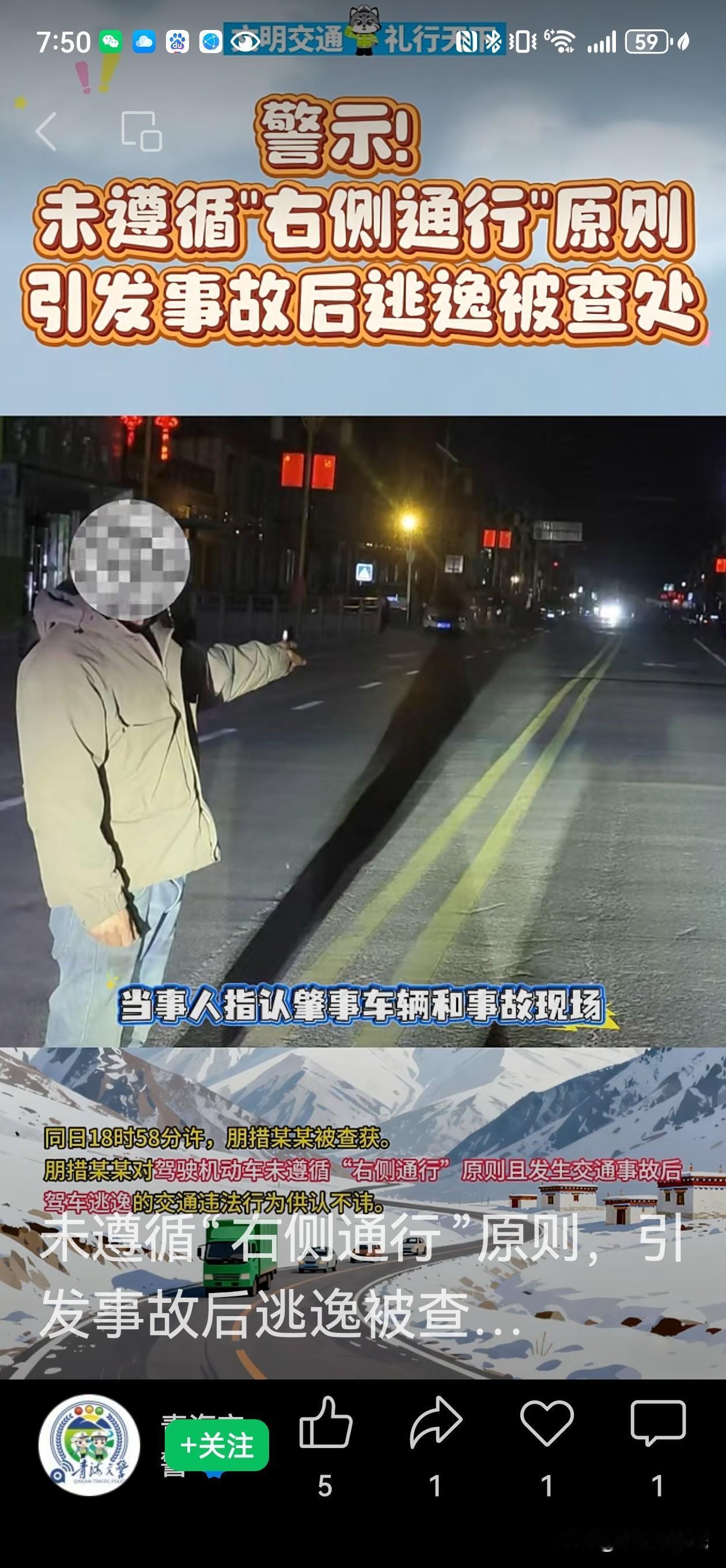 青海这位朋措某某撞了车就逃跑,看交警怎么收拾他… 去年12月18日一大早,在玉树治多县城,朋措某某开车不靠右行,咣当一下撞向路边停的车,本以为下车查看报警,谁曾想他脚底抹油溜了。你能逃到哪去?这不,当天晚上就被交警逮着了!这下好了,记9分罚1200块,还得自掏腰包修车,保险还不赔。 老司机们都明白,路上出事最怕啥?就怕“跑”这个字!你这一跑,性质全变了。保险一分不赔不说,处罚直接往重了走。本来可能只是普通事故,逃逸就成了大事! 咱们老百姓开车,谁还没个磕碰?真遇上了,记得“车靠边、人撤离、即报警”,谨防二次事故。 逃逸?监控满大街都是,你能跑到哪儿去?就像这位朋措某某,躲得了初一躲不过十五,何必呢!规规矩矩处理,比啥都强。 记住了啊:道路千万条,安全第一条;出事别逃跑,逃跑罪加一等!