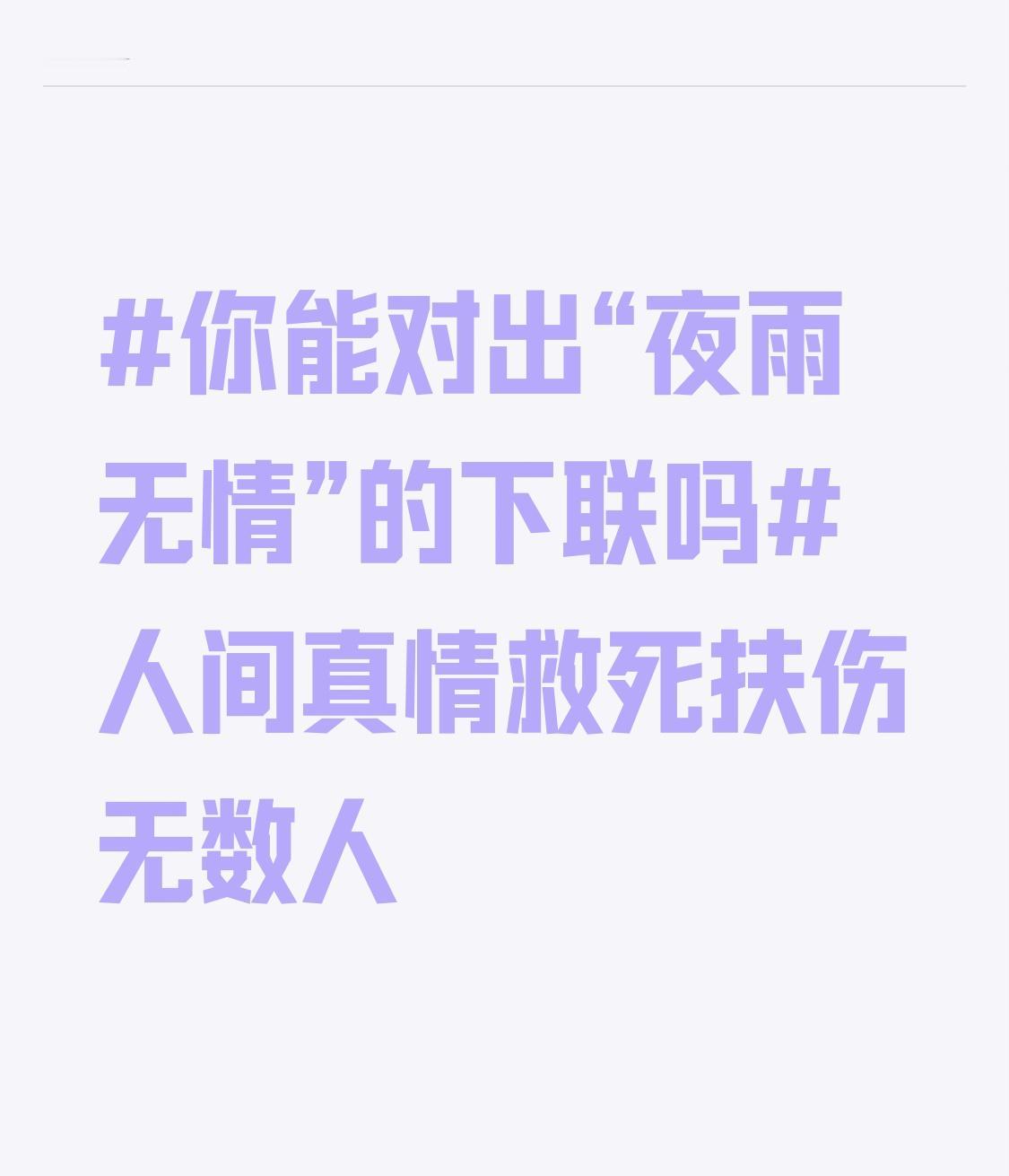 你能对出“夜雨无情”的下联吗人间真情救死扶伤无数人