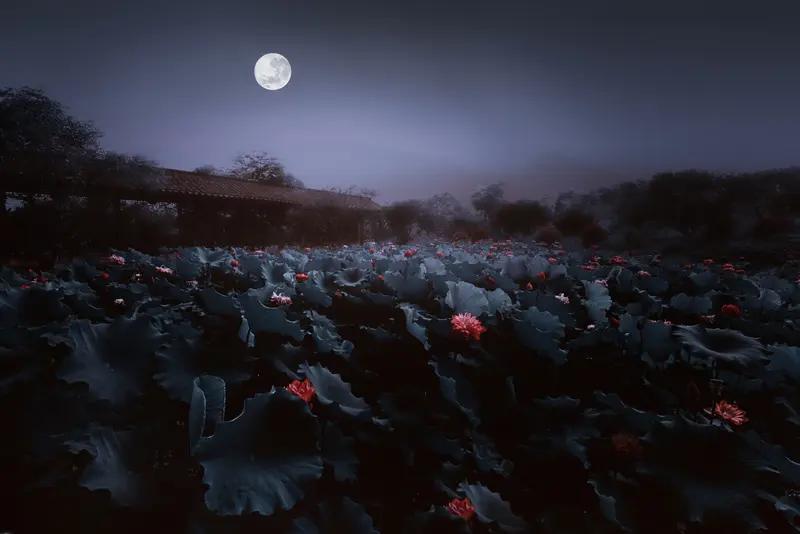 上联:月照荷塘静,邀请下联风拂柳暗幽。