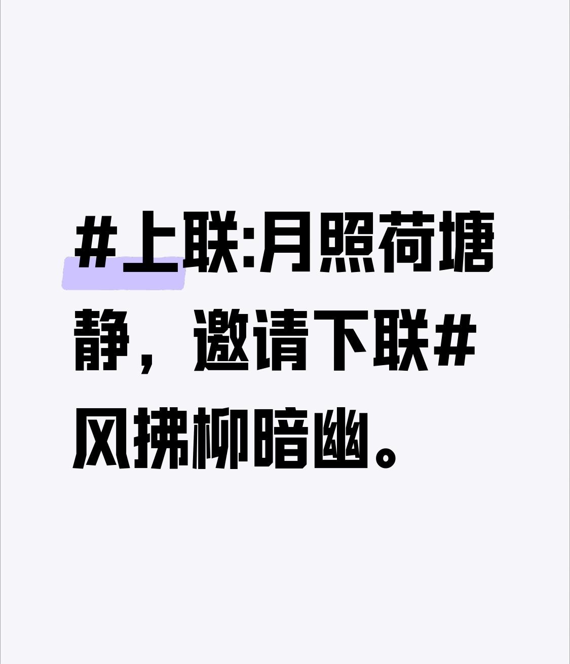 上联:月照荷塘静,邀请下联风拂柳暗幽。