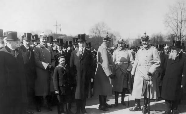 🇩🇪德国末代皇孙威廉 「我们兄弟俩性格迥异。据母亲说,哥哥非常温顺、守规矩。而我却对任何权威和纪律都深恶痛绝。哥哥天生对一切与军人有关的事物充满热情;实际上,他就是个天生的军人。这并不奇怪。霍亨索伦家族数百年来一直是军人世家,尽管并非只有军人,这一点常被忽略。因此,家族的军事传统对哥哥来说是自然而然的,他继承了这一传统,而我没有。」 图9:在俾斯麦诞辰100周年的庆典时 @摸鱼喝东方树叶的X立方 欧洲王室 历史 老照片 普鲁士