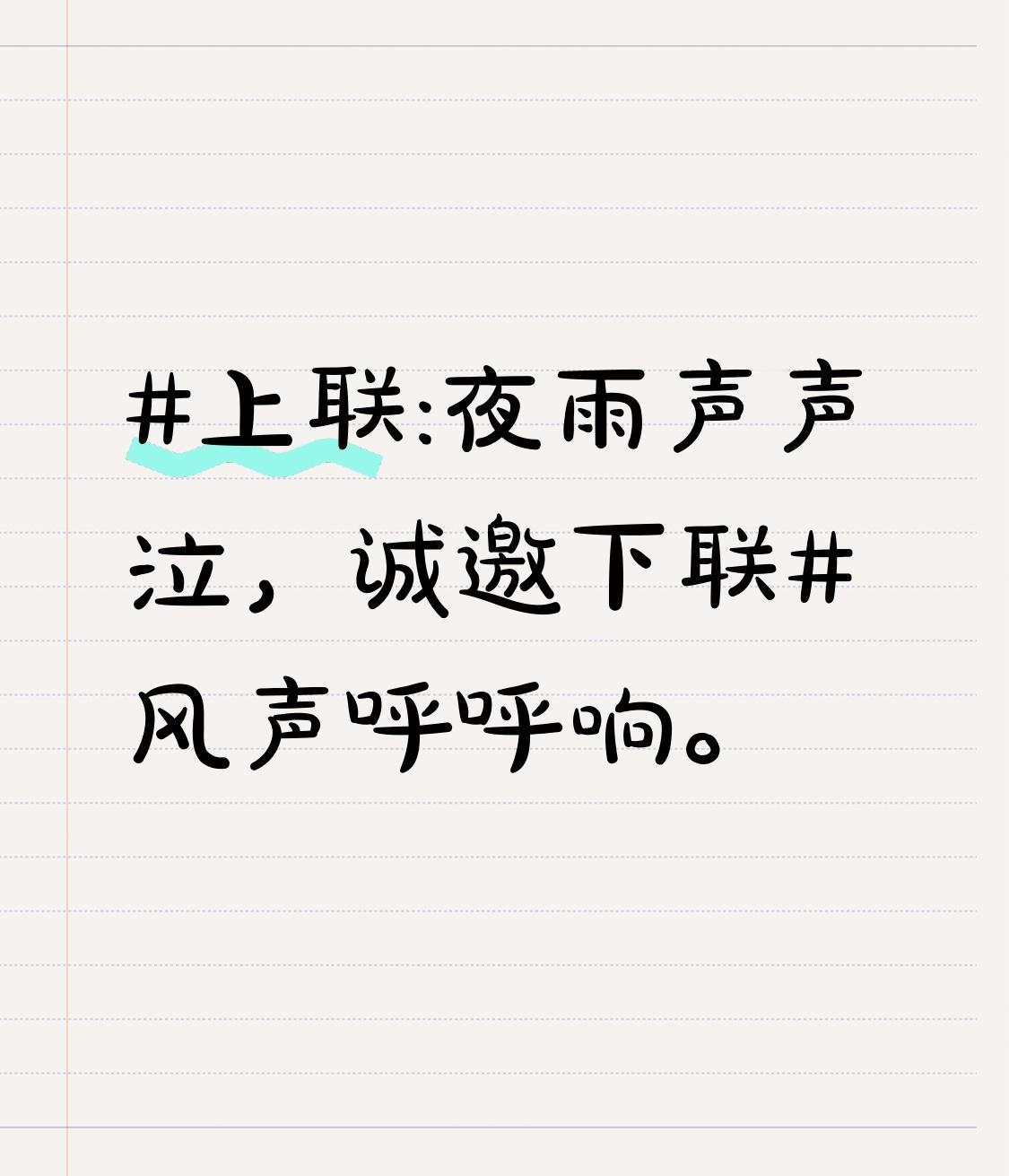 上联:夜雨声声泣,诚邀下联风声呼呼响。