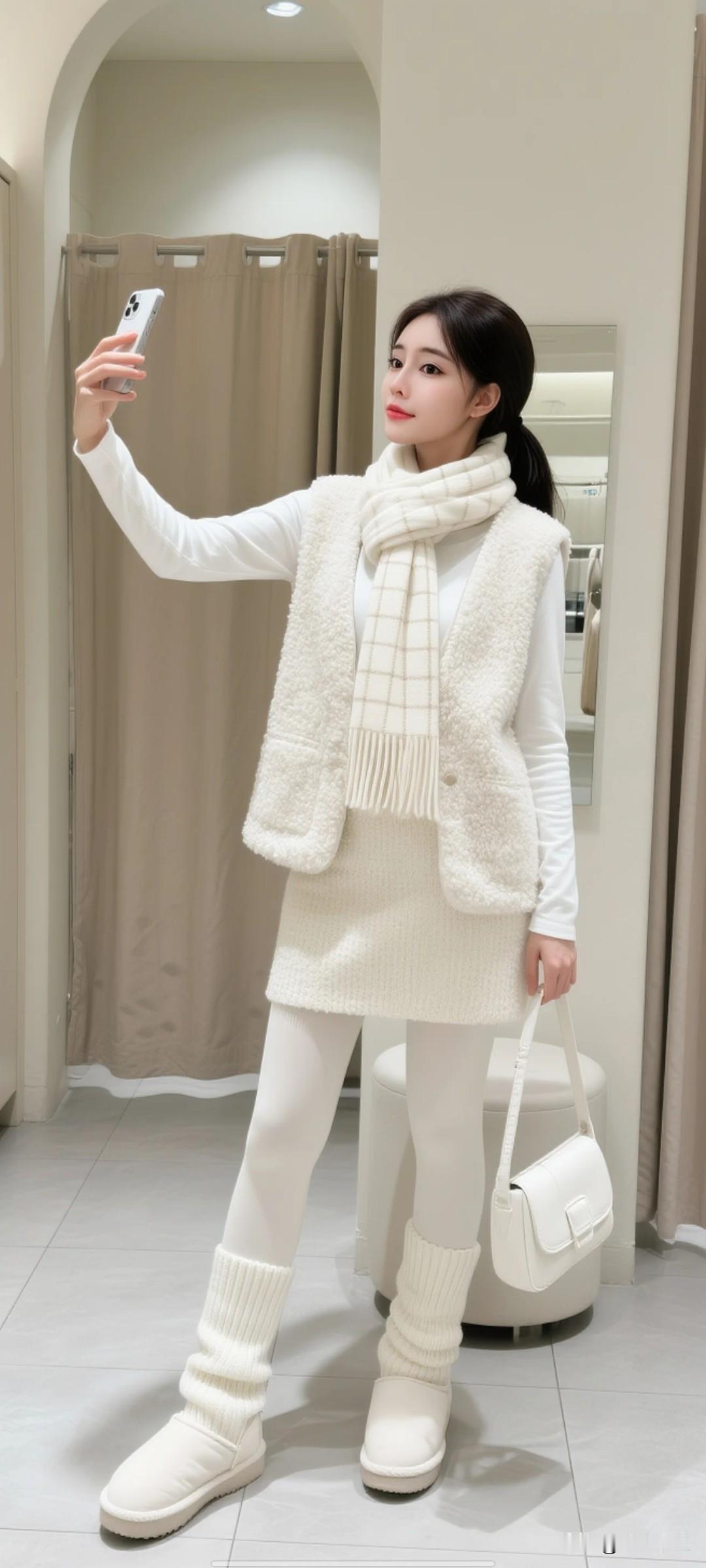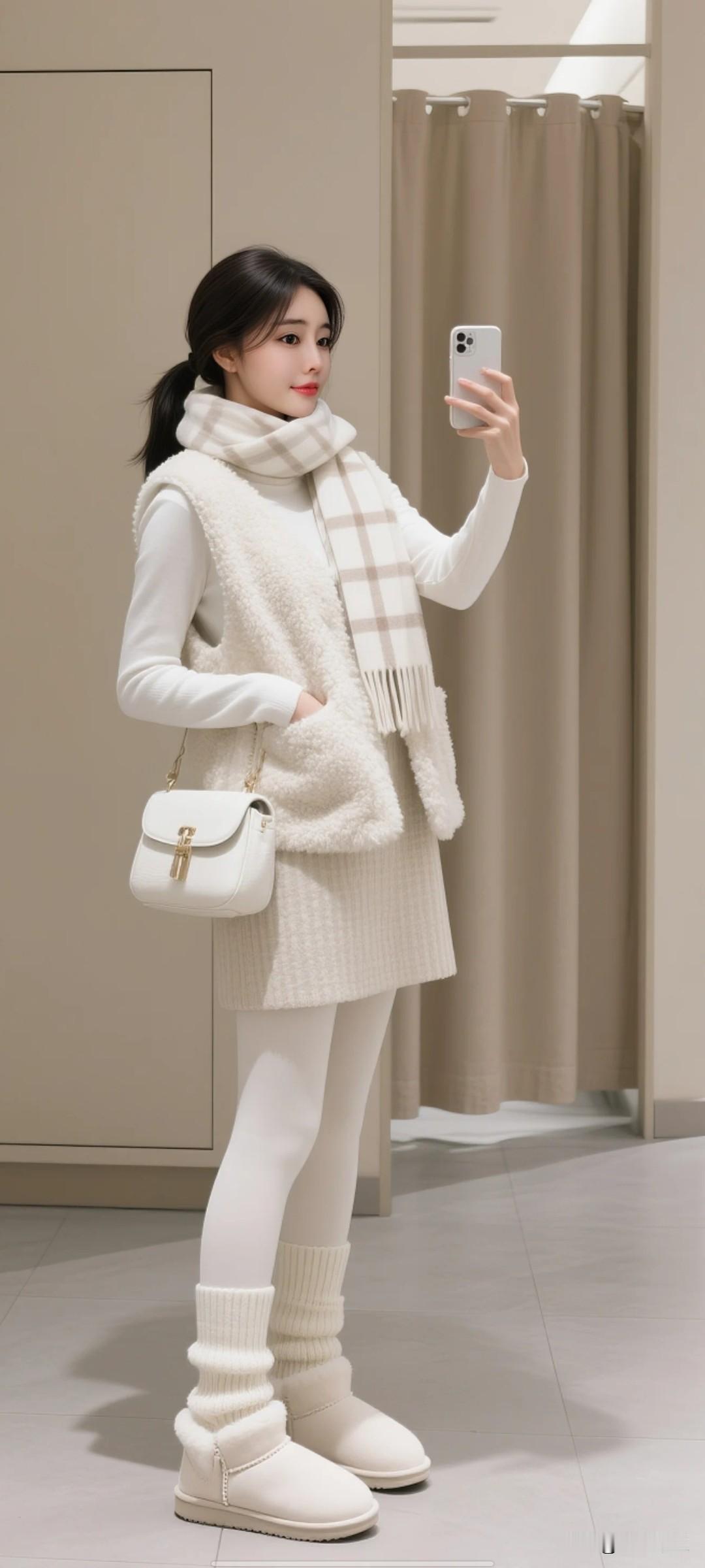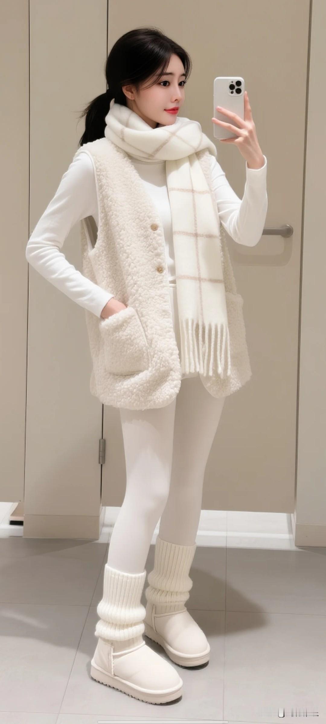 晒图笔记大赛 如何拍摄出漂亮的人像照片 分享美丽瞬间街拍 冬日穿搭指南:温暖羊羔绒背心+毛绒围巾+白色靴子,尽显甜美与舒适!🌟💖