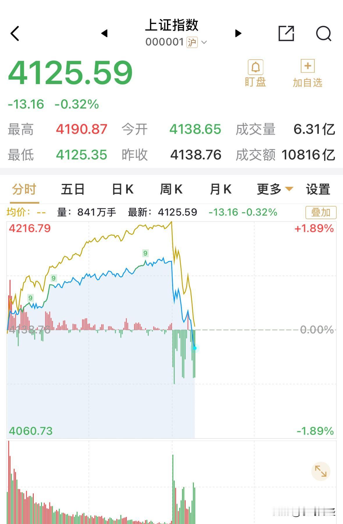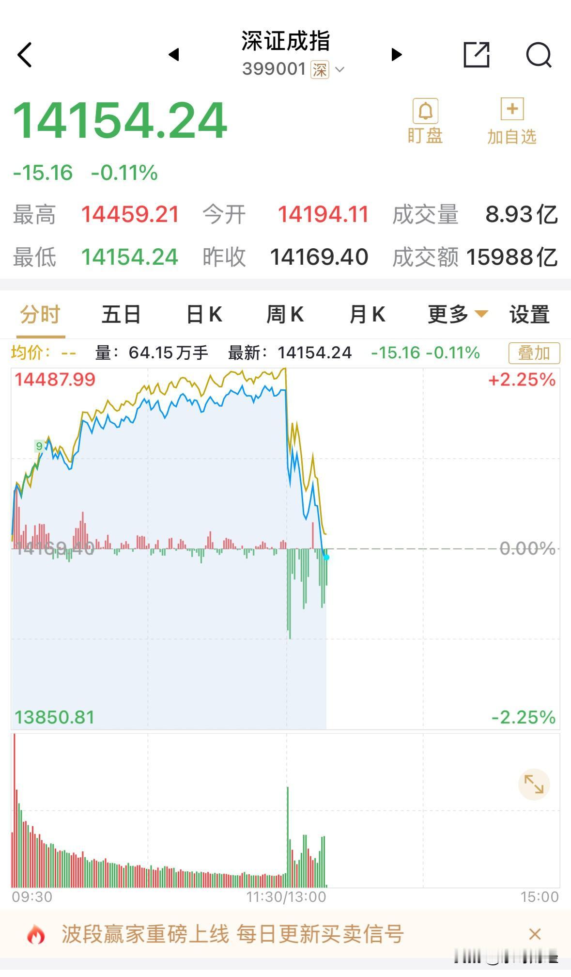 午后短短的几分钟,指数由大涨转跌,这是发生了什么黑天鹅事件? 别人吃个午饭的时间,资金便全线集体做空,得到了窗口指导了,不准吃饭,好好研究下,如何让小散们感觉到A股的风险深刻教训? 多少账号由早盘大赚几乎被瞬间清零,真是好冷酷好无情的教育。 希望是咋惊一场,午后还是能收回来吧。 乐呀财经