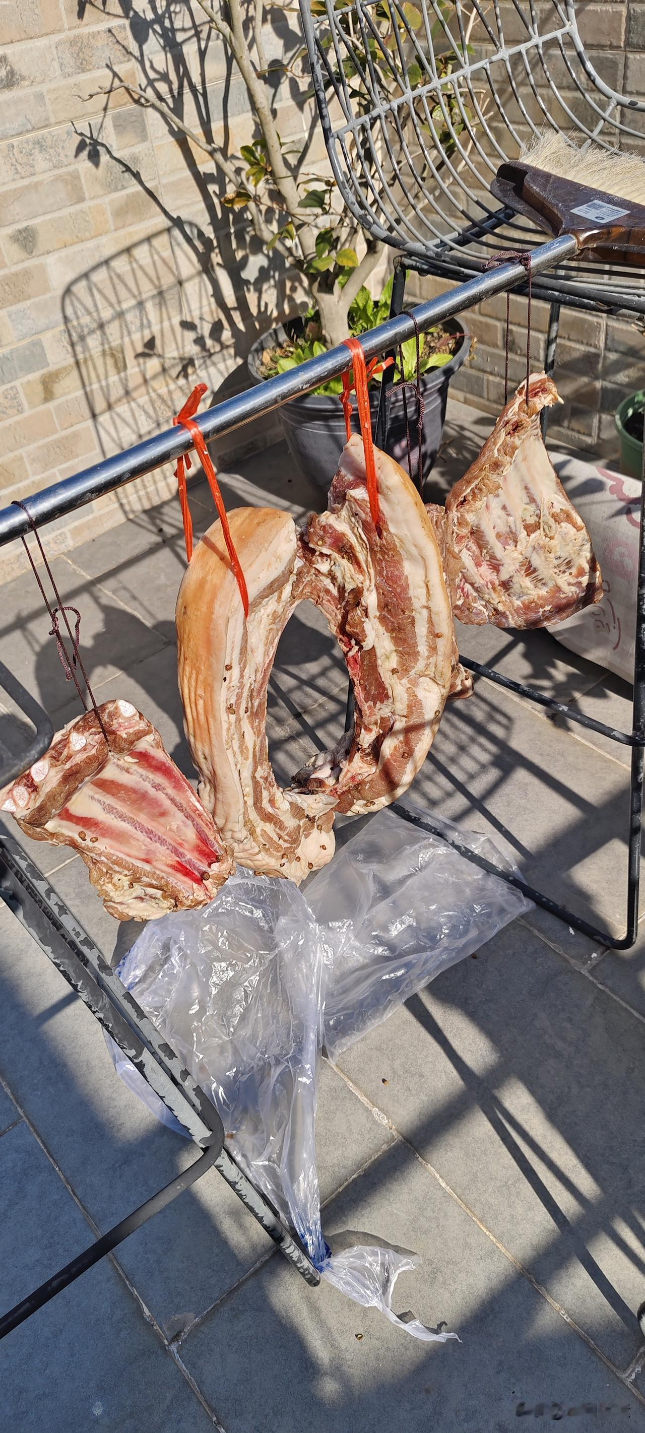 在魔都,腌制了腊肉。翻了三遍,今天拿在太阳里晾干。从家里带了一些,煮了孩子们喜欢吃。虽然加工肉不宜多吃,过年准备一点还是有必要的。农家腊肉