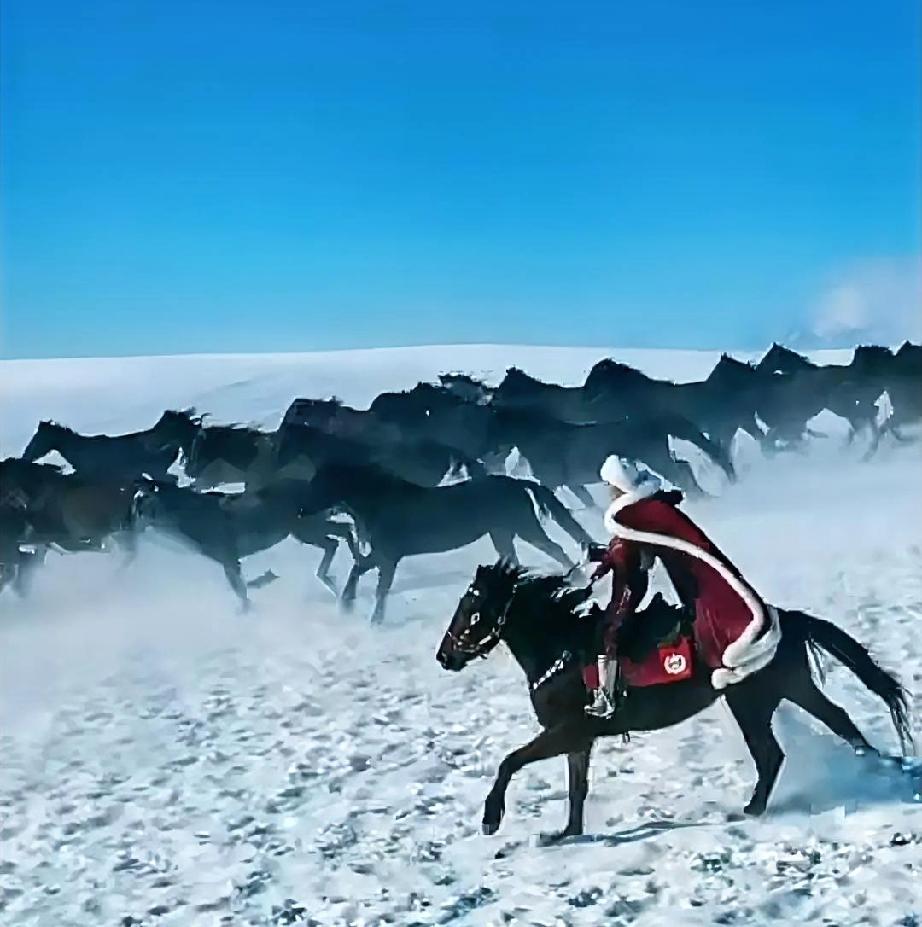 愿平安!你是怎么认识她的? 身披红衣,飒爽英姿的贺娇龙! 在白雪皑皑的广阔天地中, 一抹红色策马奔驰在无垠天地, 恰如精灵闪耀! 她向人们展示了新疆的另一种美, 可以豪情万丈, 亦可以娇俏可人! 新疆好美, 你也好美! 惟愿平安![祈祷][祈祷] 贺娇龙