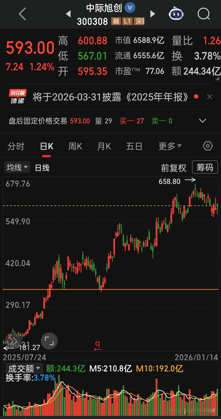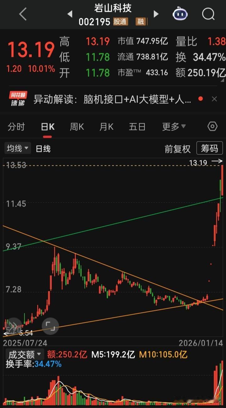 【每日观察,2026.01.14】A股日成交总额再创历史新高,在总成交额39868亿比上个交易日增量2880亿、上涨2747家下跌2592亿、涨停110家跌停19家的情况下,谁在成交额前十 特变电工267.16亿,跌1.97% 金凤科技257.60亿,跌1.68% 岩山科技250.19亿,涨10.01%没封板 蓝色光标246.99亿,涨3.74% 中际旭创244.34亿,涨1.24% 东方财富234.90亿,涨0.94% 航天电子220.76亿,涨4.75% 中国卫星187.13亿,跌2.32% 新易盛 173.34亿,涨0.20% 三花智控172.99亿,跌4.01%