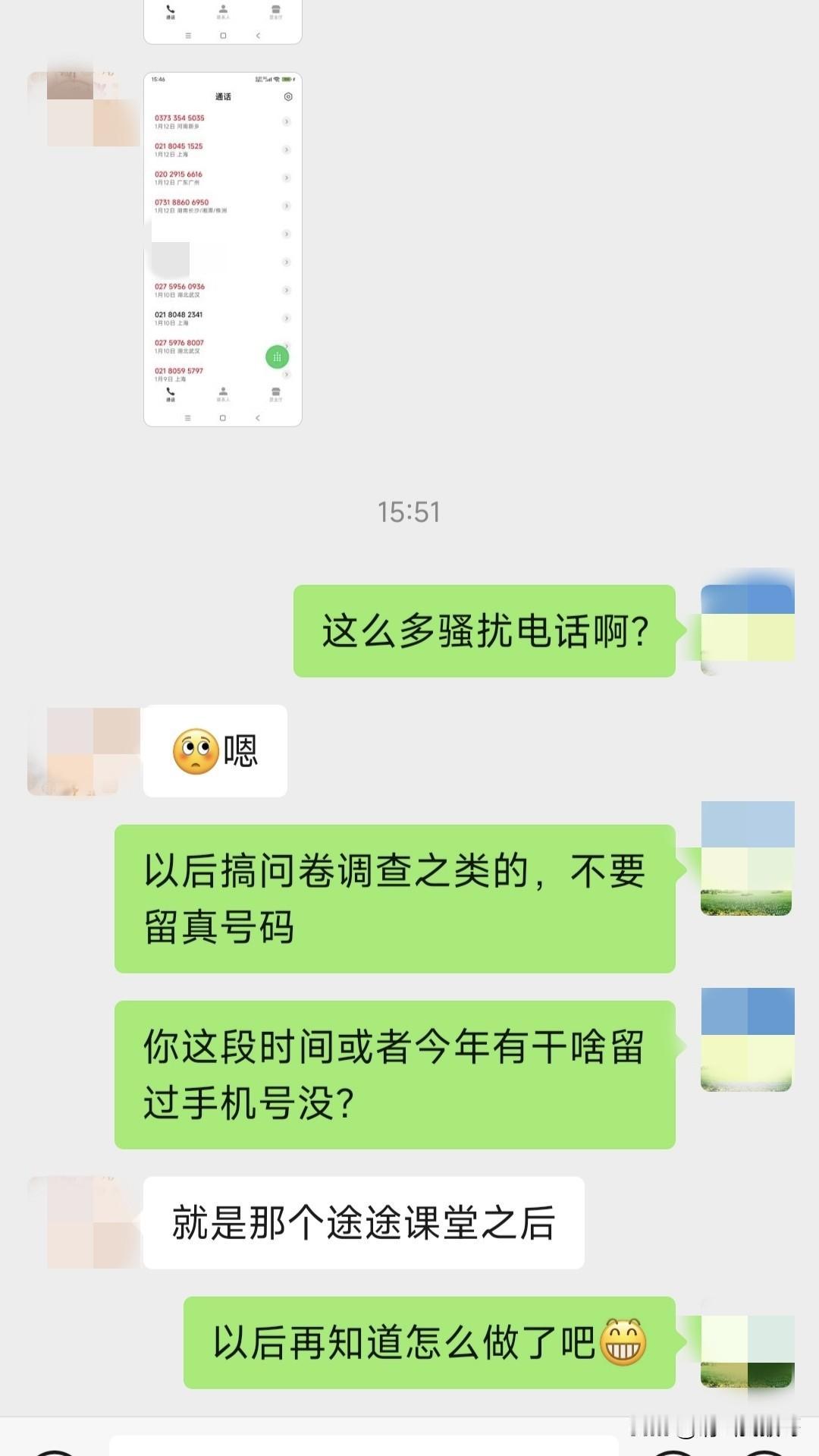 今天老婆告诉我,说这两三天她接到了几十个骚扰电话,截图给我看,全国各地的都有,大多都是座机号。我就问她最近有没有留过手机号,她告诉我学校推出的一个网络教育问卷调查填过手机号,我估计就是这个类似于小程序的问卷调查,获取了用户信息并且被泄露的。我就告诉她,以后凡是要填手机号的时候,就让她给我打个电话,毕竟她平时很少关注新闻,对这种信息泄露没有一定的防范意识。你们平时有因为填了手机号,短期内接到很多骚扰电话的吗?