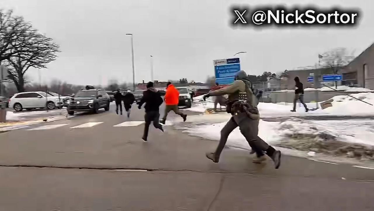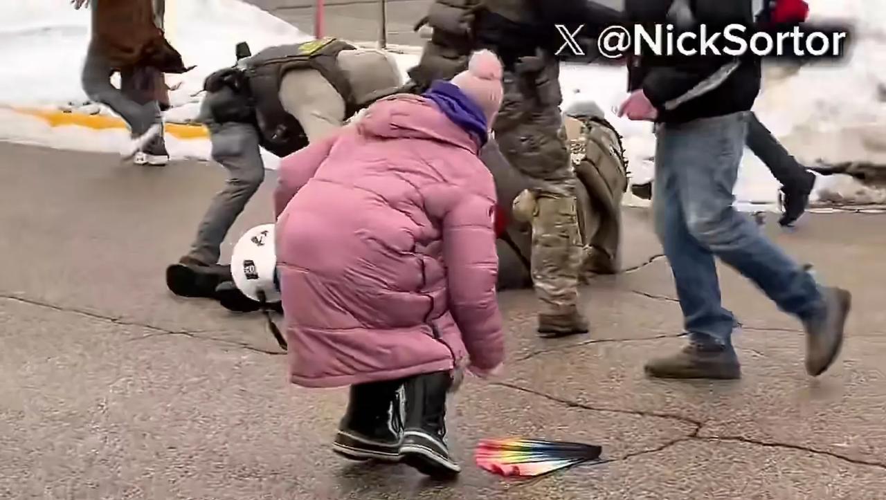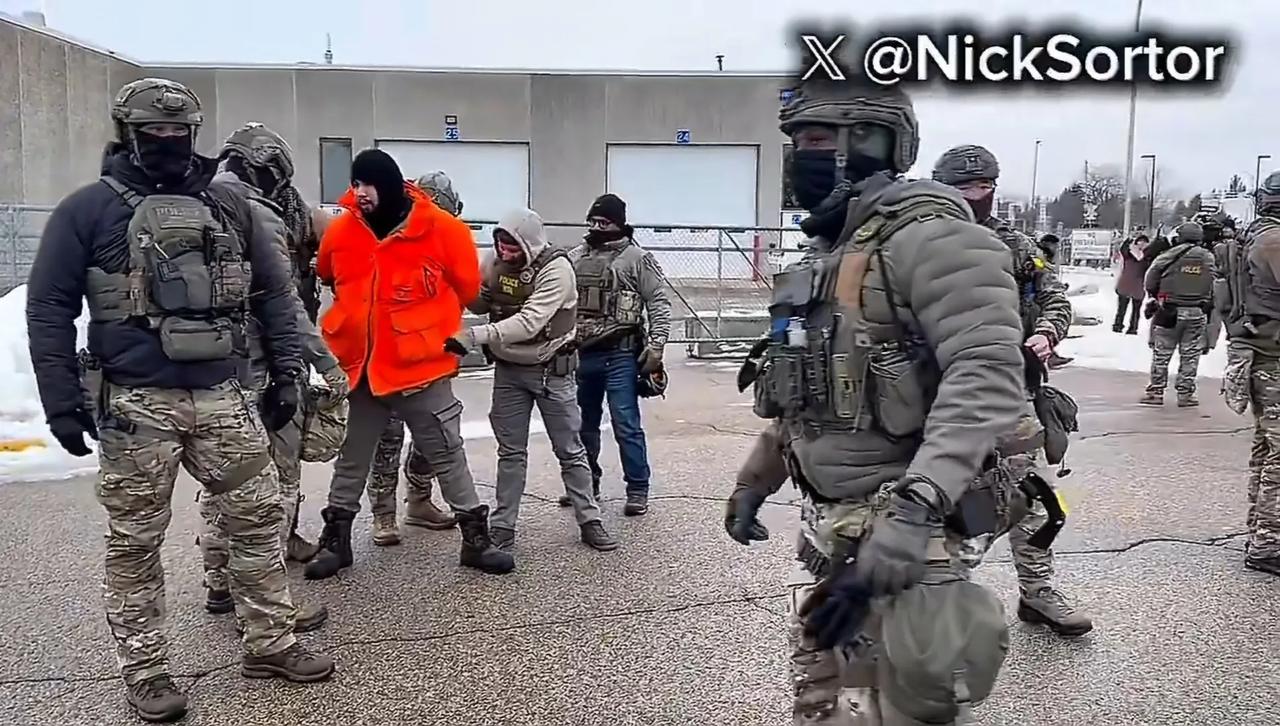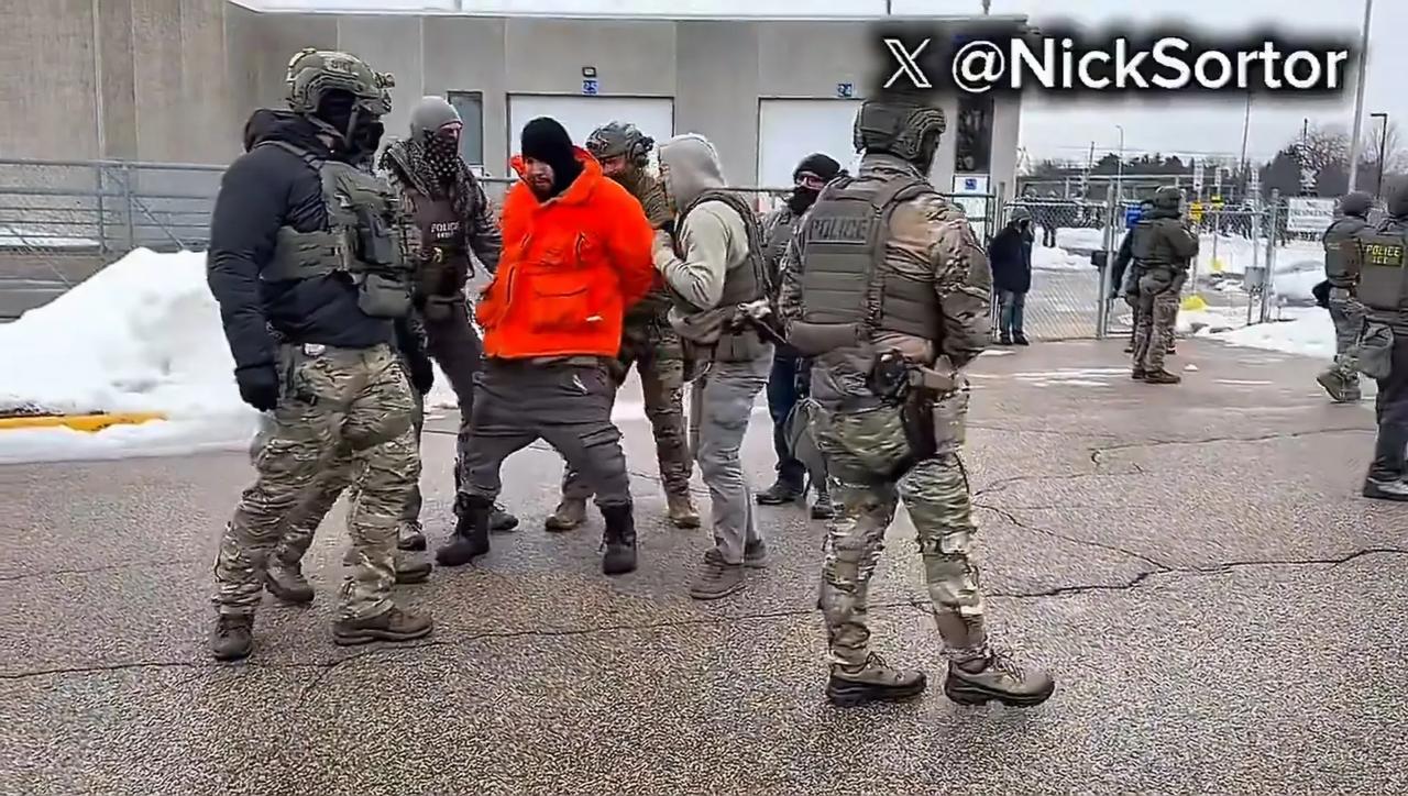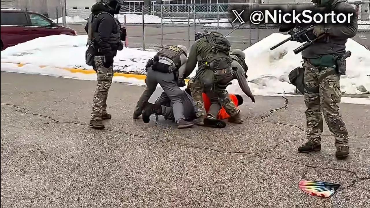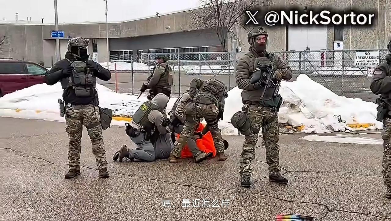 美国明尼苏达州明尼阿波利斯,一名穿红衣的男子向ICE干员扔东西然后想跑,但迅速就被一群如狼似虎的ICE干员抓住了。 看看美国记者镜头里的ICE干员不仅武装到牙齿,而且人数众多,“非法移民”还不肝儿颤。#ICE执法#